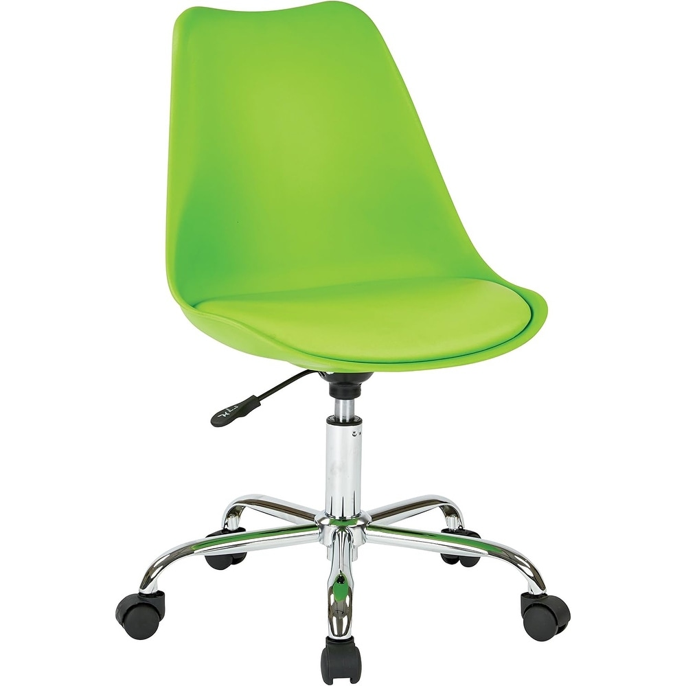 Armless Home Office Task Chair with Pneumatic Chrome Base and Wheels, Green