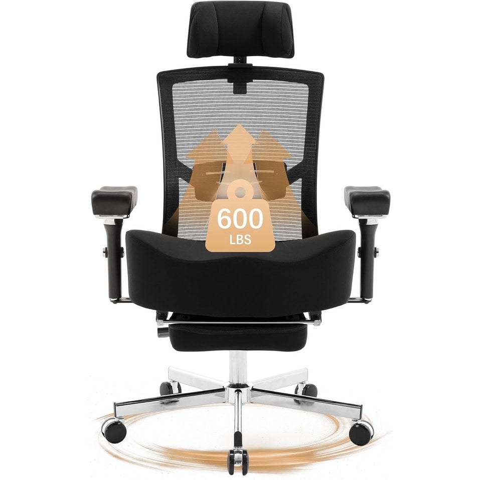 Oversized Ergonomic Mesh Office Chair with Adjustable Armrests, Lumbar Support, and Footrest