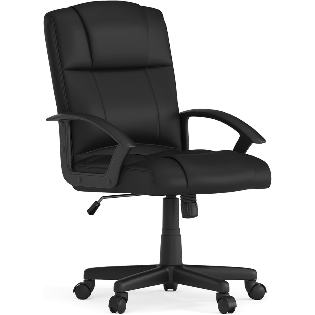 Ergonomic Mid-Back Office and Gaming Chair with Padded LeatherSoft Seat and Adjustable Height, Black