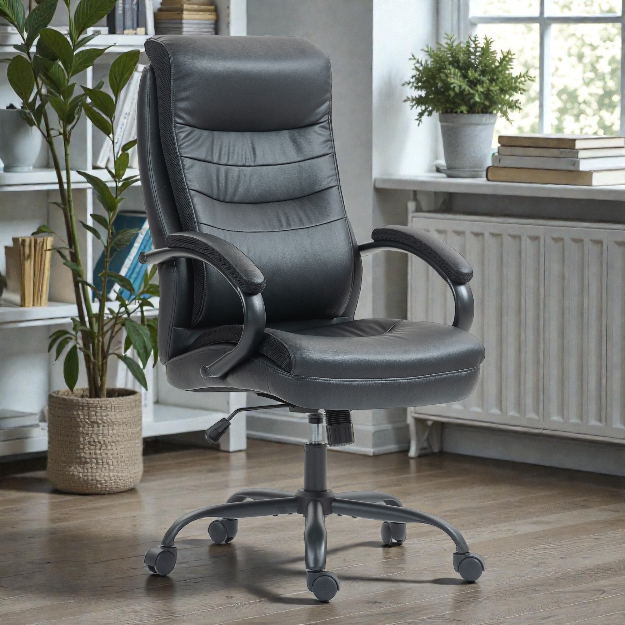 High Back Executive Office Chair with Adjustable Height, Ergonomic Lumbar Support, Wide Cushioned Seat and PU Leather Upholstery