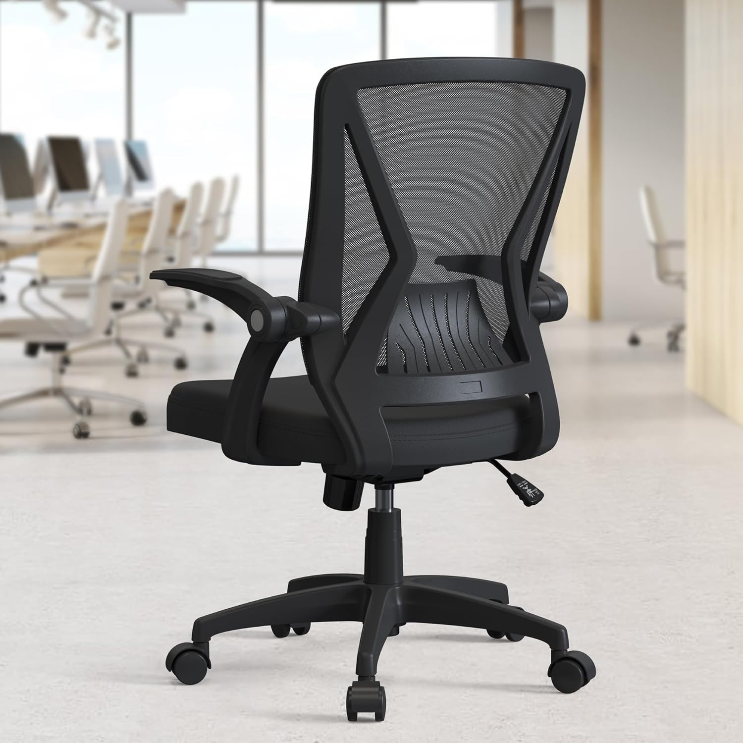 Ergonomic Mesh Office Chair with Flip-Up Arms, Adjustable Height, and Lumbar Support