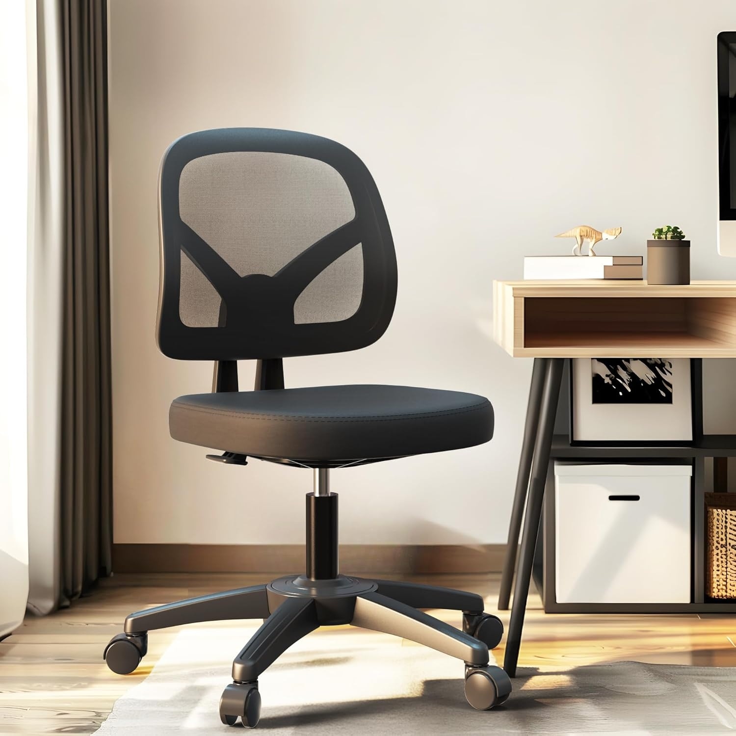 Compact Armless Office Chair with Y-Shape Lumbar Support and Adjustable Height for Home and Office Use