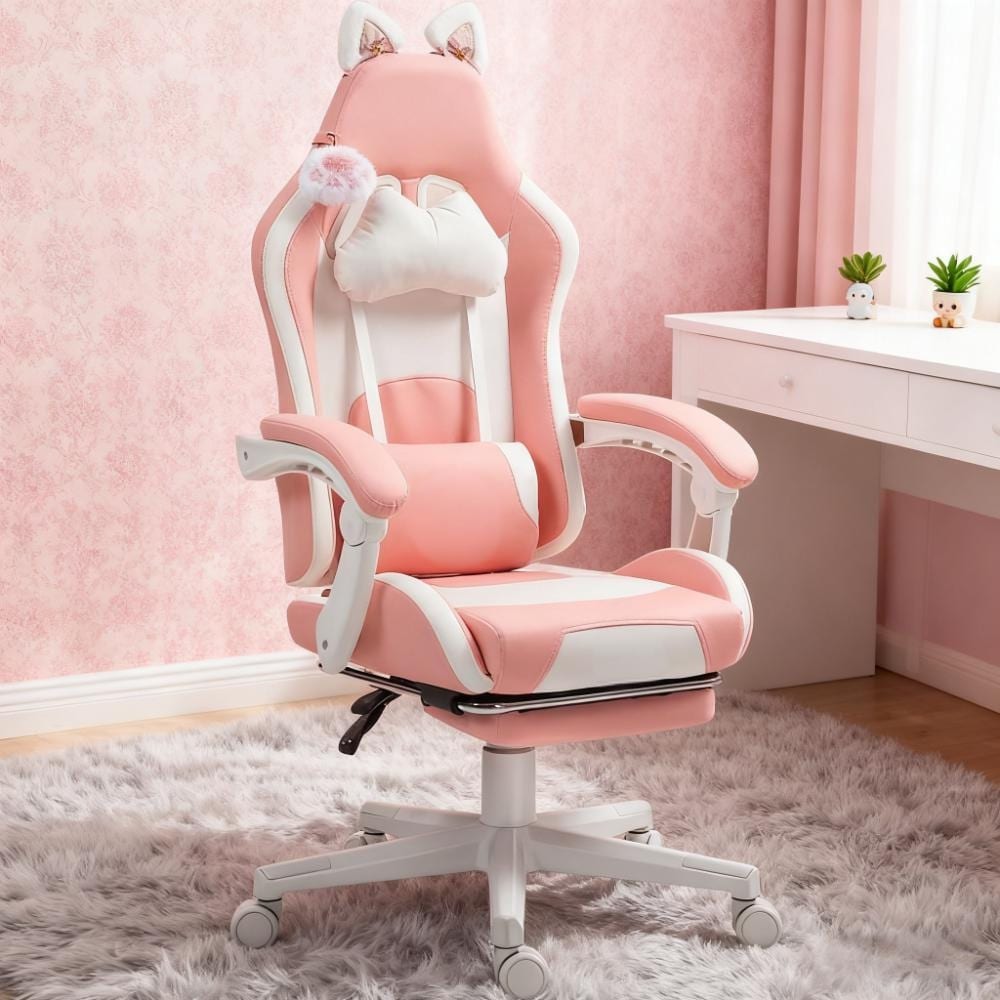 Faux Leather Gaming Chair with Footrest, Racing Gamer Chair, Headrest and Lumbar Support