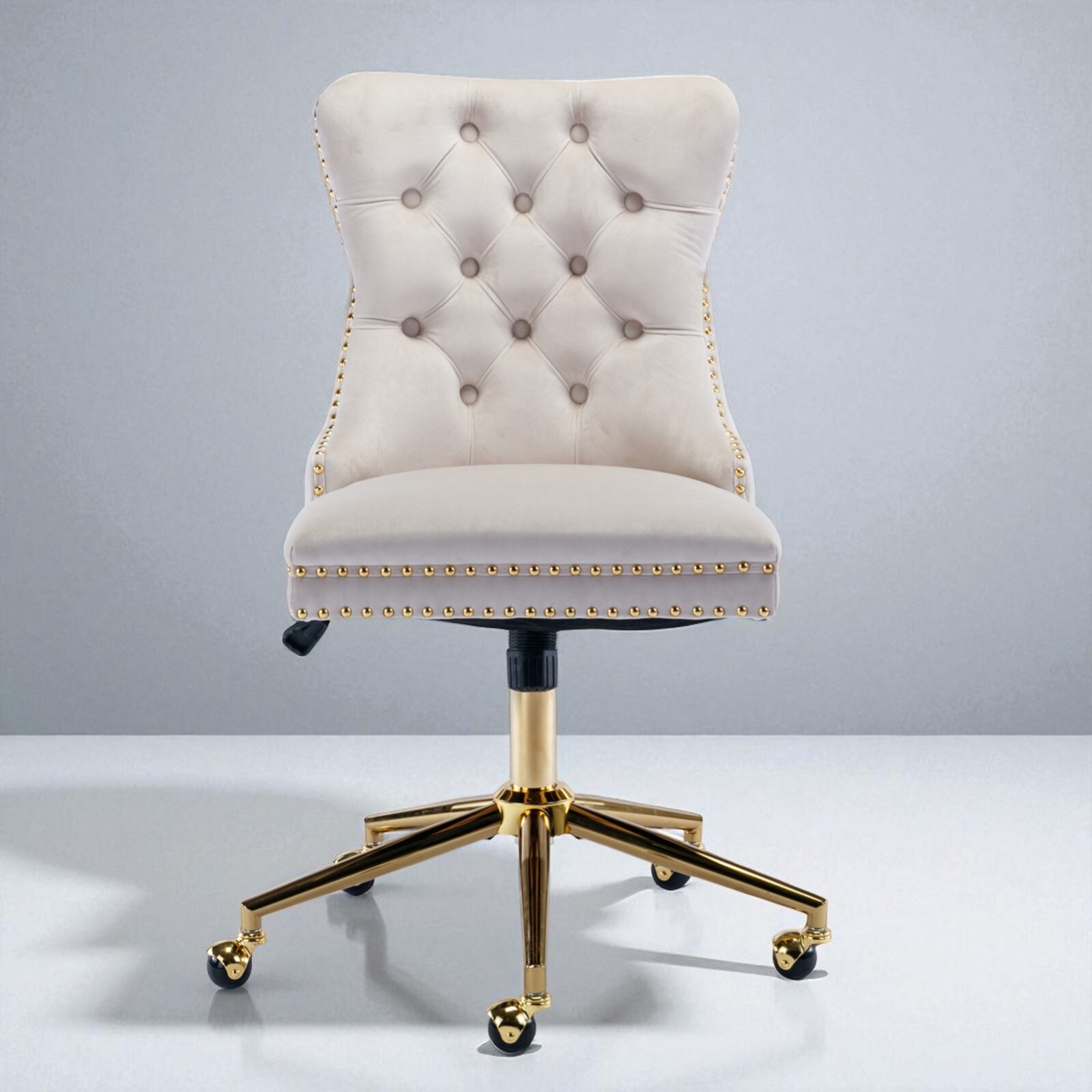 Velvet Tufted Adjustable Swivel Home Office Chair with Gold Metal Base, Upholstered Desk Chair for Bedroom or Study