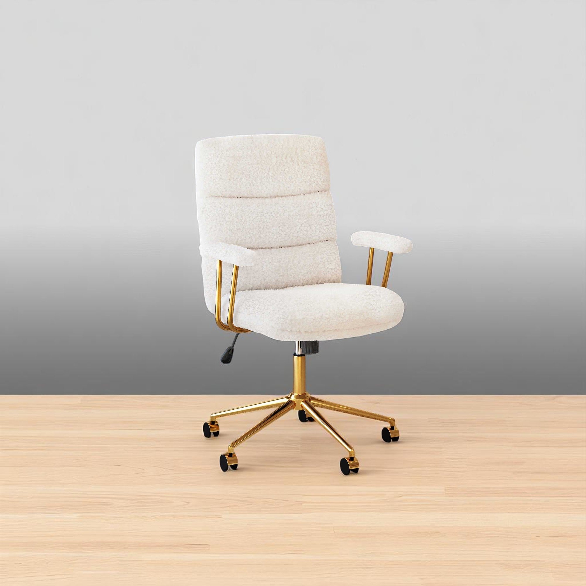 Modern Textured Boucle Office Chair with Padded Arms, Adjustable Height Desk Chair with Gold Base and Casters, Foam Seat