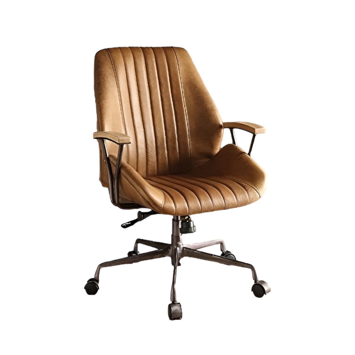 Coffee-Black Faux Leather Steel Task Chair with Tufted Back and Swivel - 28” W x 24” D x 37” H