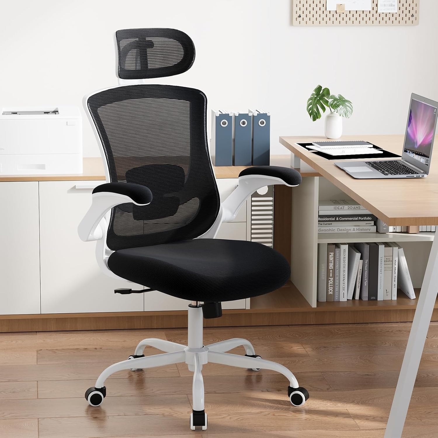 Ergonomic High Back Office Chair with Adjustable Lumbar Support, Headrest, and Flip-Up Armrests for Home and Office Use