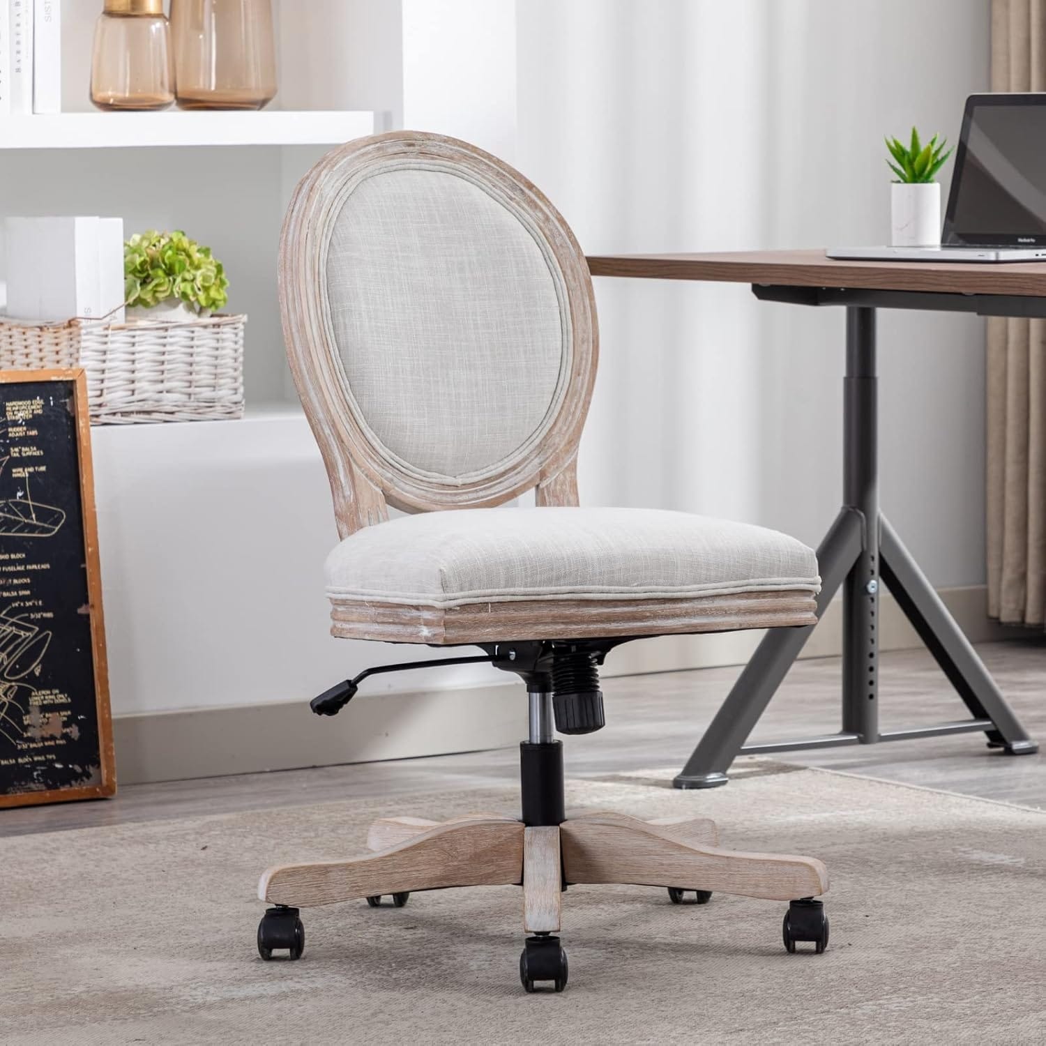Vintage Linen Fabric Swivel Desk Chair with Mid Back Support and Wheels, Height Adjustable, Beige