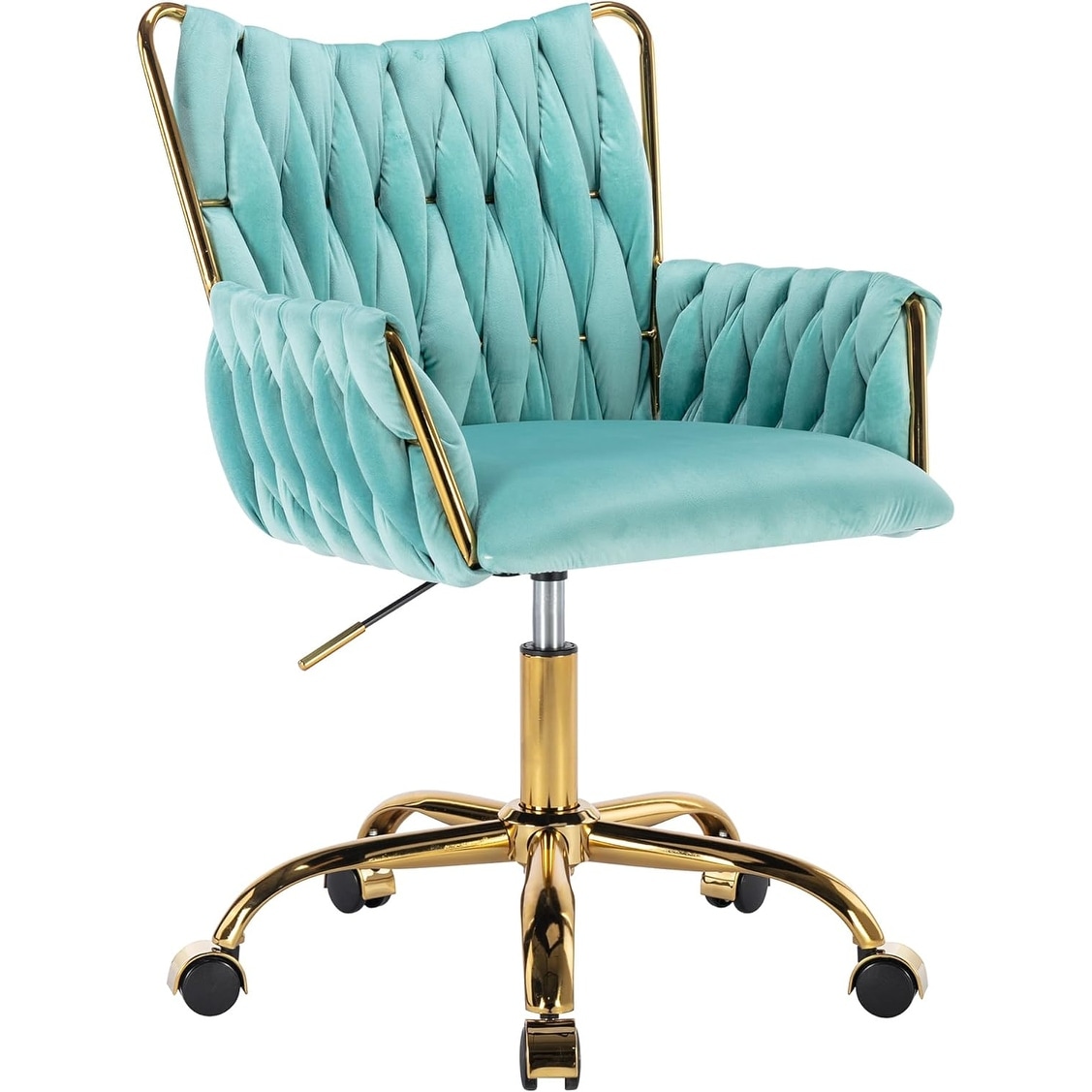 Velvet Desk Chair, Adjustable Swivel Chair with Woven High Back, Light Blue for Home Office, Living Room, Bedroom
