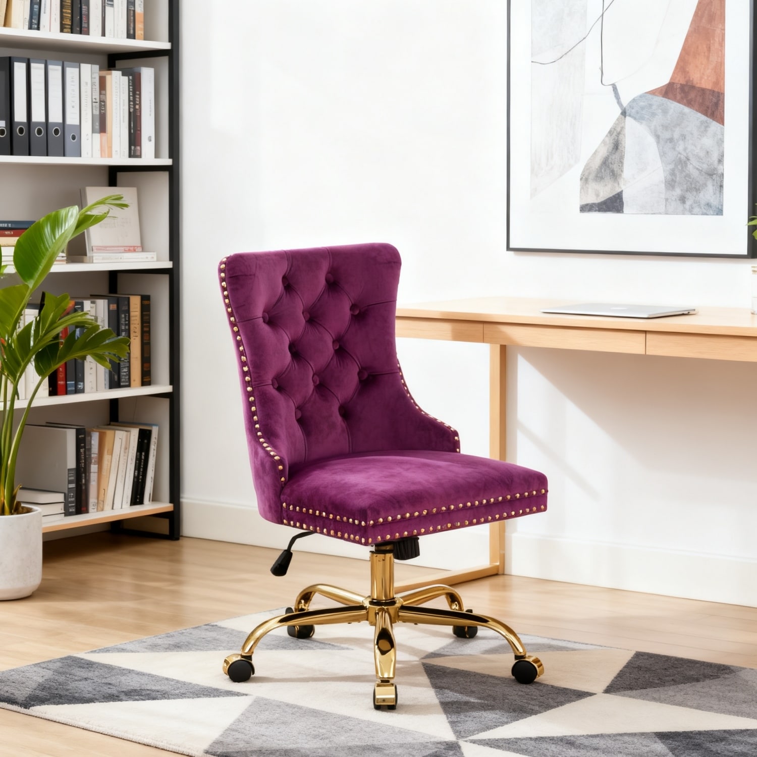 Velvet Tufted Button Home Office Swivel Chair with Golden Metal Base