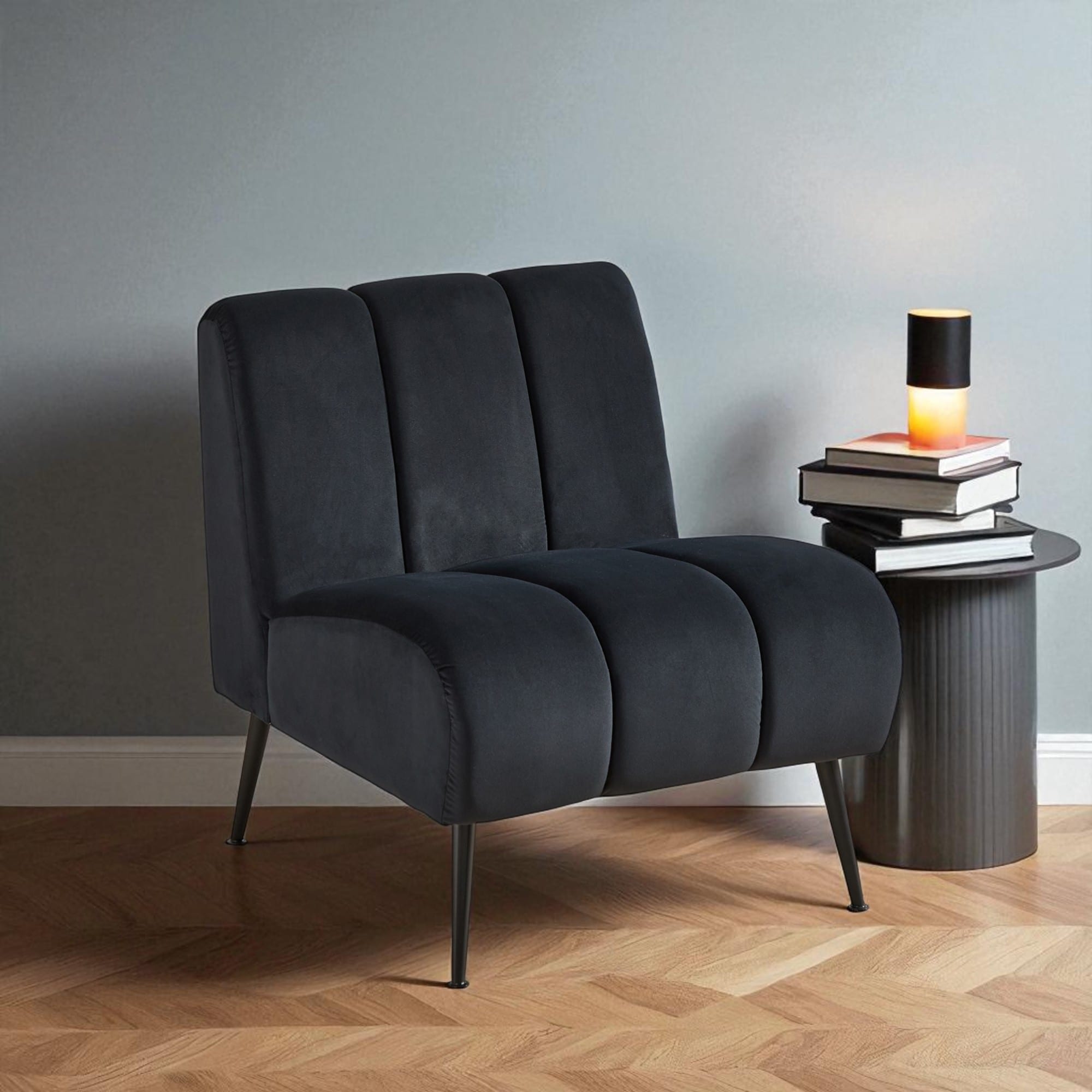 24.4" Velvet Armless Accent Chair with Metal Legs, Modern Upholstered Lounge Side Chair for Bedroom, Living Room, or Office