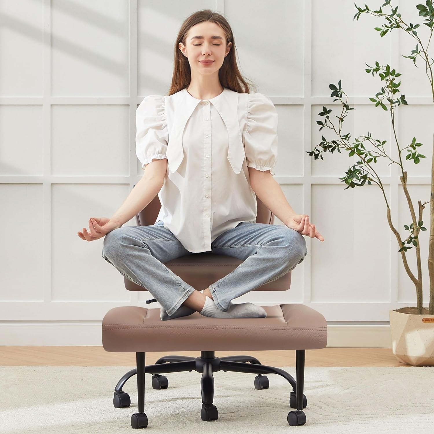 Ergonomic Cross-Legged Office Chair with Adjustable Footrest - Swivel Meditation Chair for Yoga & Active Sitting