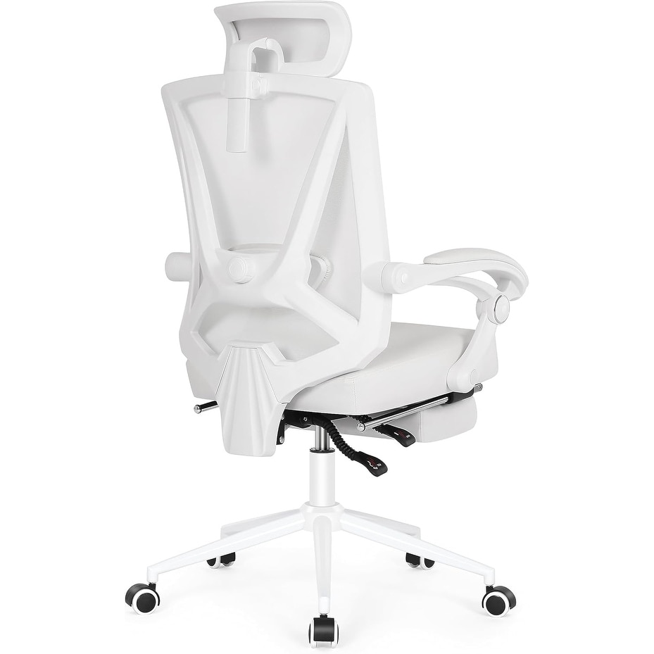 Ergonomic Office Chair with Adjustable Lumbar Support, Headrest, and Footrest, High Back Comfortable Leather Desk Chair