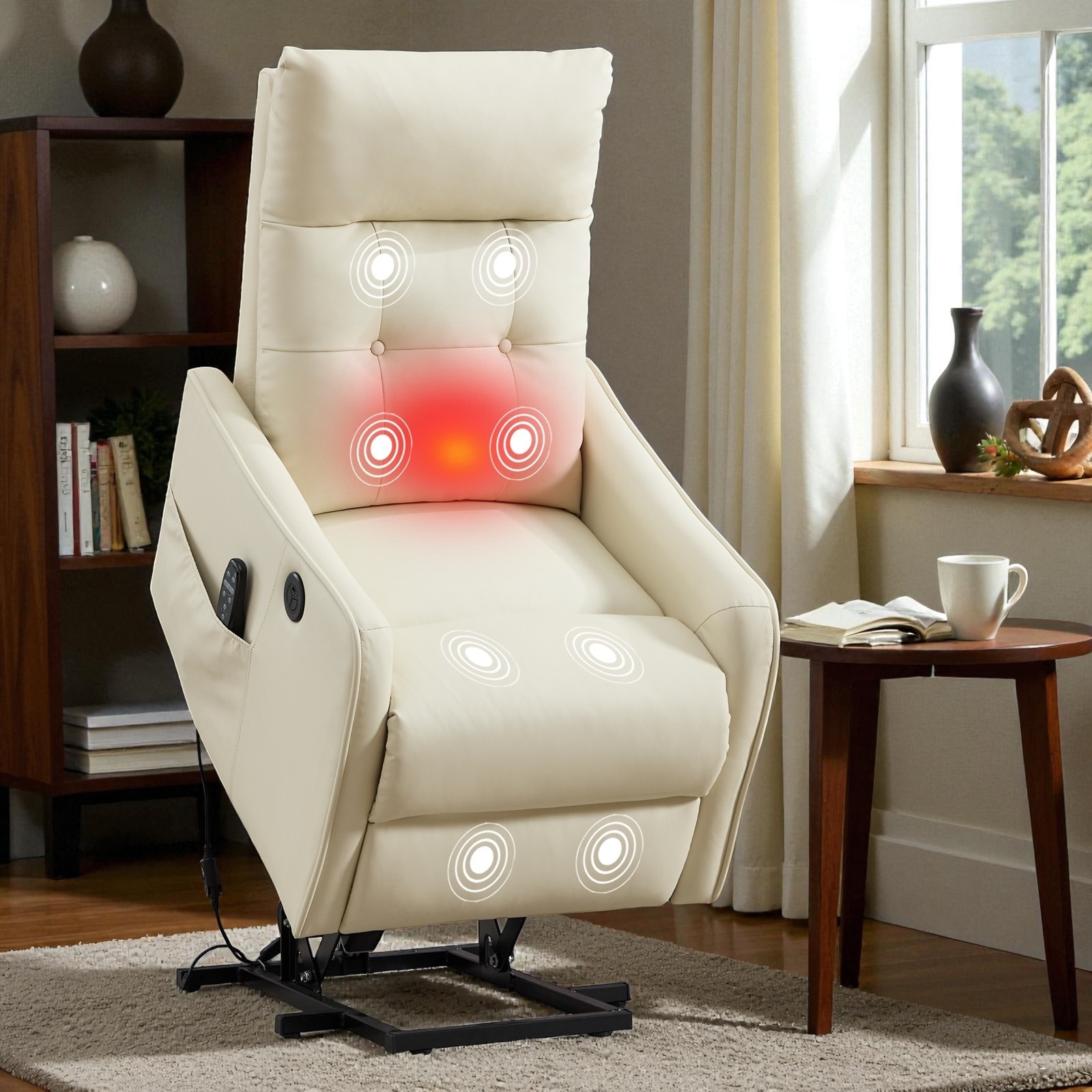 Single Motor Power Lift Recliner with Massage and Heat, Faux Leather Chair with USB Charging for Elderly