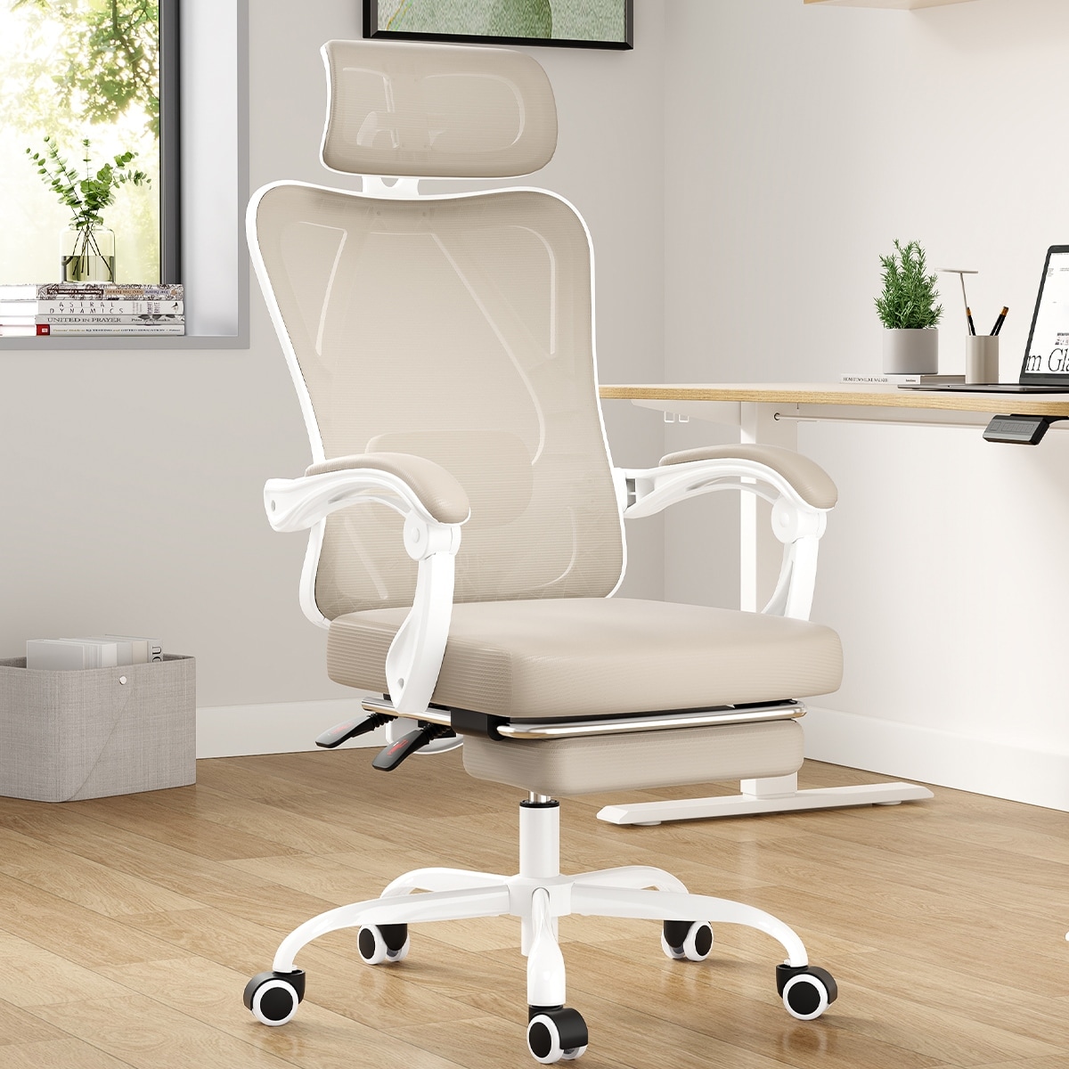 Ergonomic Office Desk Chair with Folding Footrest, Mesh Lift Swivel Computer Chair with Headrest, High Back Rocking Gaming Chair