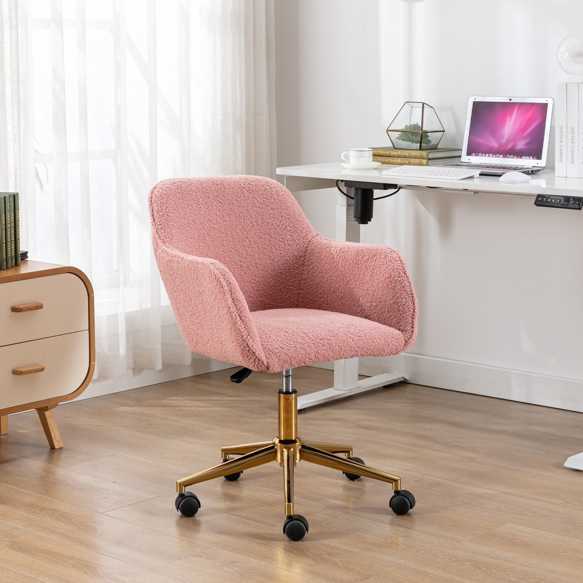 Modern Teddy Fabric Home Office Chair Adjustable Height 360° Swivel Gold Legs