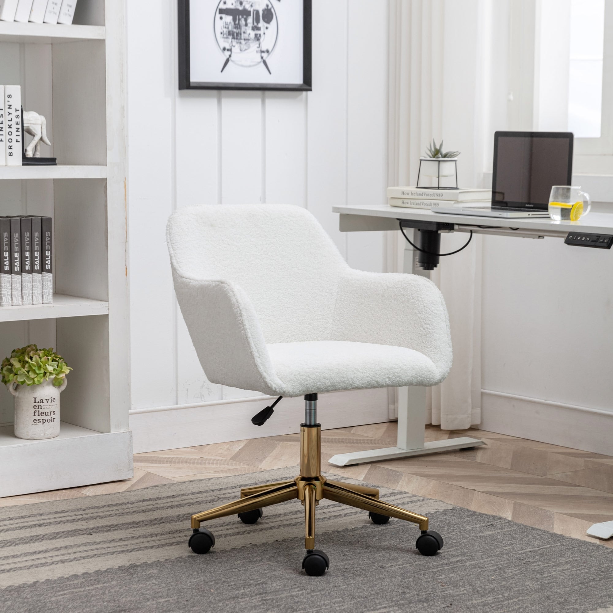 Modern Teddy Fabric Home Office Chair Adjustable Height 360° Swivel Gold Legs