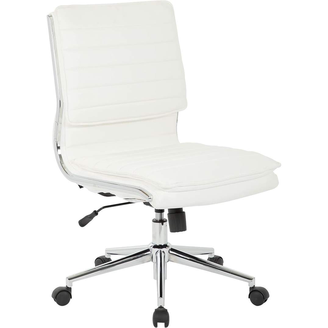 Mid Back Faux Leather Office Chair with Chrome Base, Armless, White - Adjustable Height & Tilt