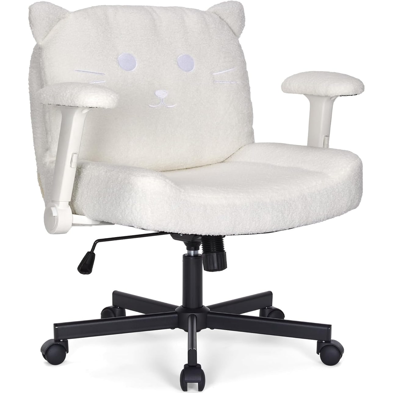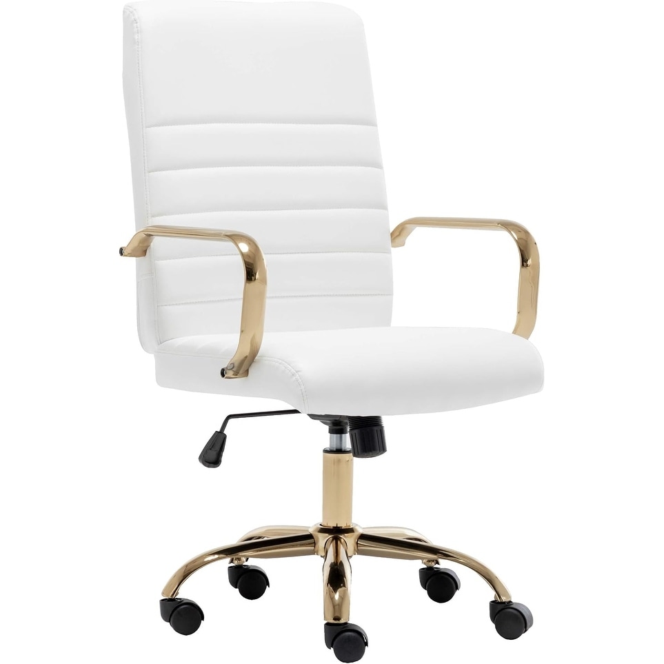 Adjustable Height White Leatherette Office Chair with Ergonomic Contoured Back, Armrests and Casters