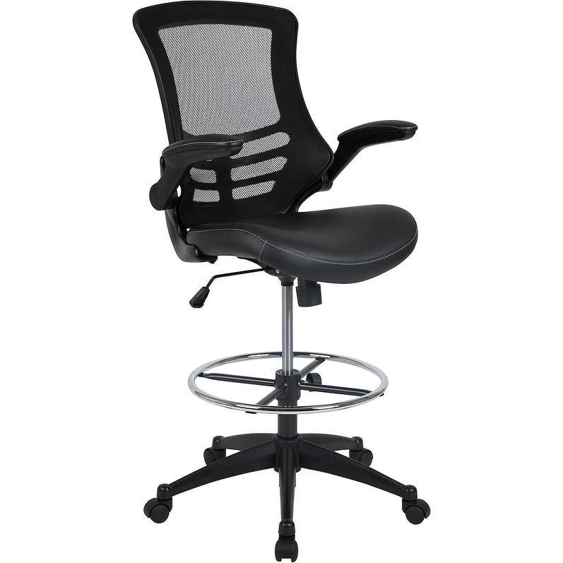 Mid-Back White Mesh Ergonomic Drafting Chair with Adjustable Foot Ring and Flip-Up Arms