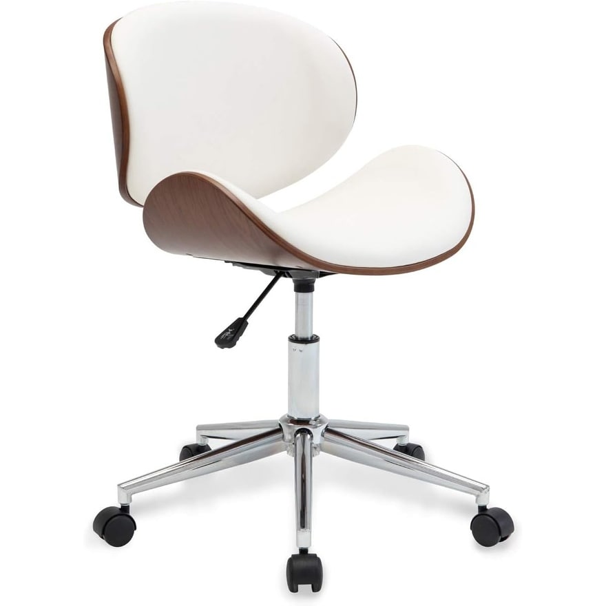 Mid-Century Modern Swivel Desk Chair with Faux Leather & Walnut Finish, Adjustable Wingback Design