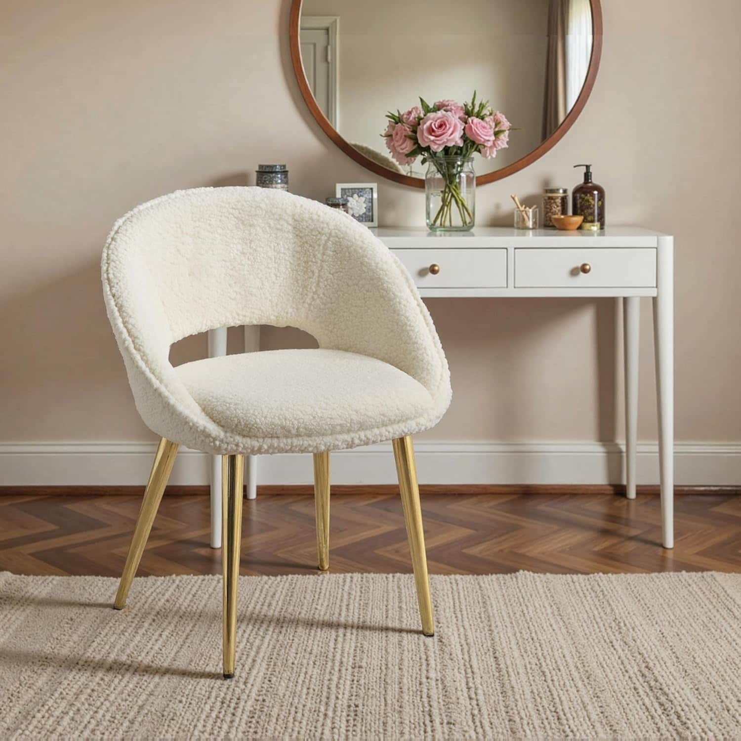 Modern Faux Fur Armchair with Metal Legs, Comfortable Upholstered Leisure Chair for Home, Office, or Vanity
