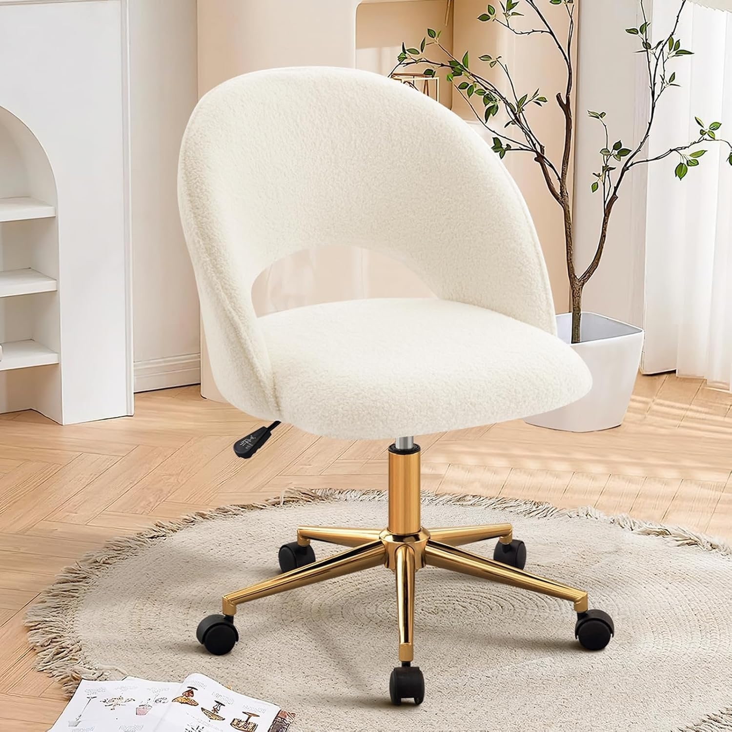 Adjustable Velvet Swivel Desk Chair with Gold Base for Home Office, Living Room & Bedroom
