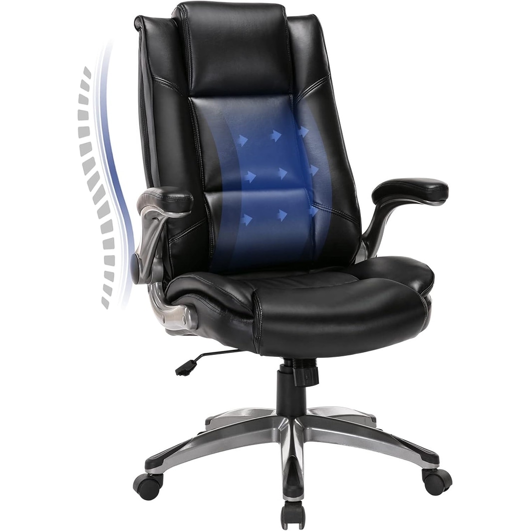 High-Back Ergonomic Office Chair with Flip-Up Arms, Adjustable Tilt Lock, and Swivel Rolling Design for Home or Office Use