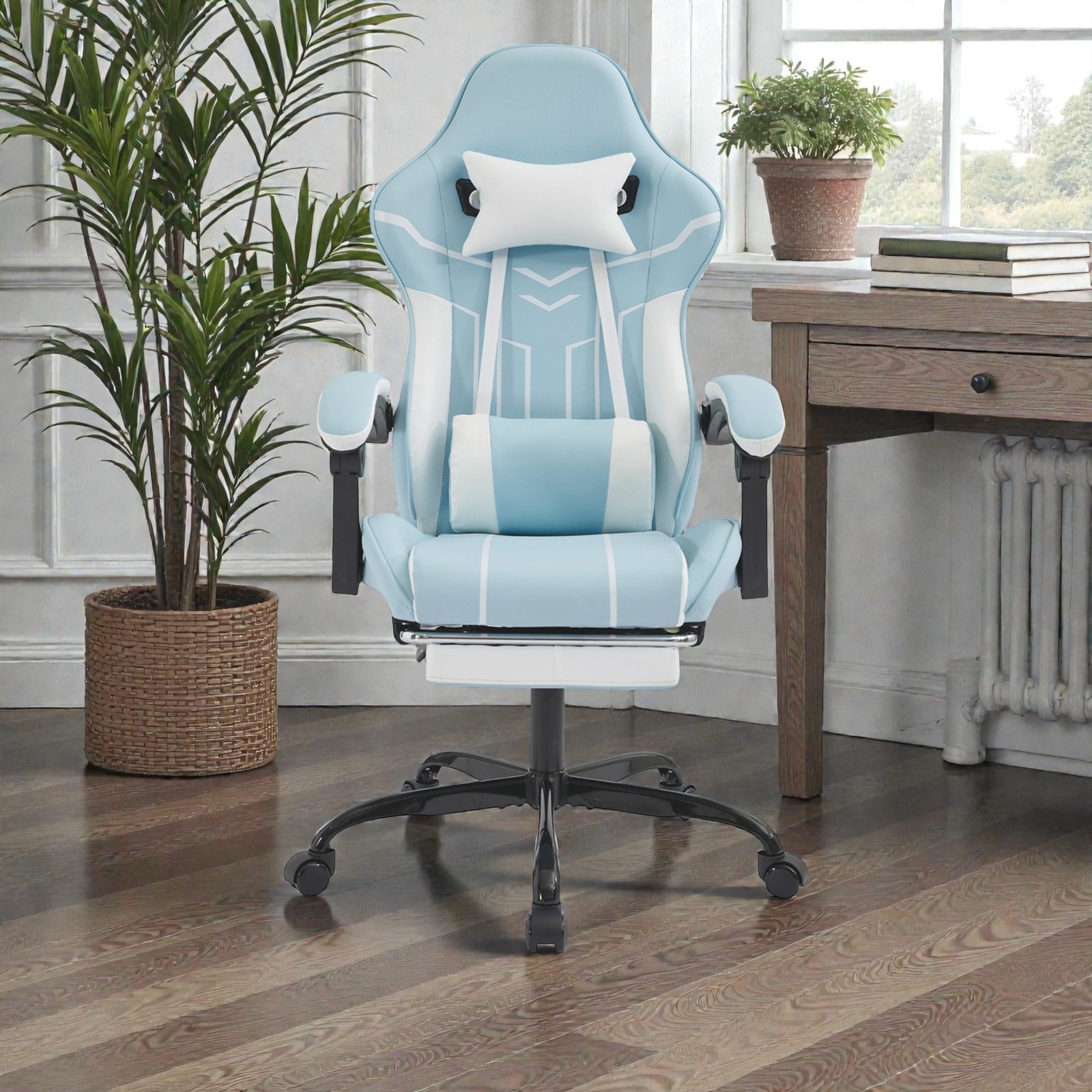 Ergonomic Gaming Chair with Footrest, Massage Lumbar Support, Adjustable Recline 90-135°, High-Back PU Leather Computer Chair