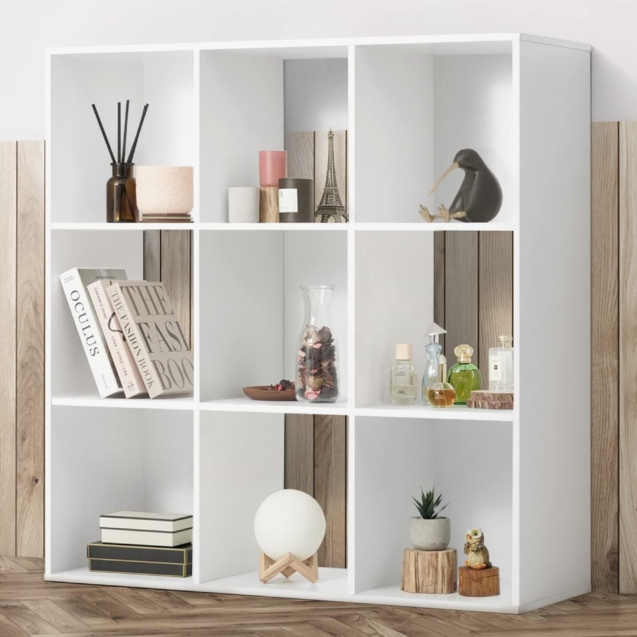 11-Inch Cube Storage Organizer Shelf with Exterior Edge, Rustic Grey Oak and White, 6/8/9-Cube Options