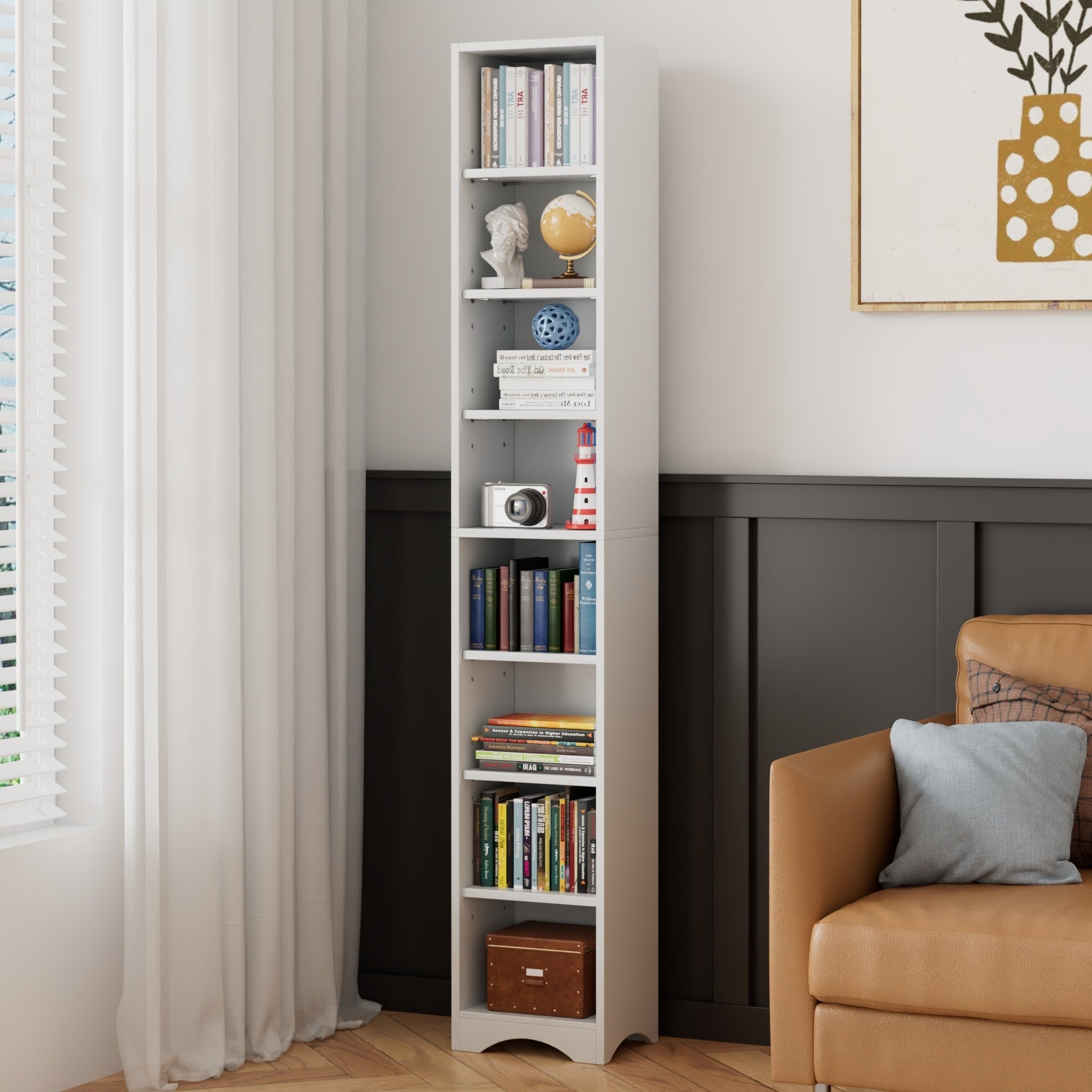 71 Inches Tall Narrow Bookcase 8-Tier Wood Bookshelf Minimalist Corner Bookcase with Adjustable Shelves Slim Media Tower Rack