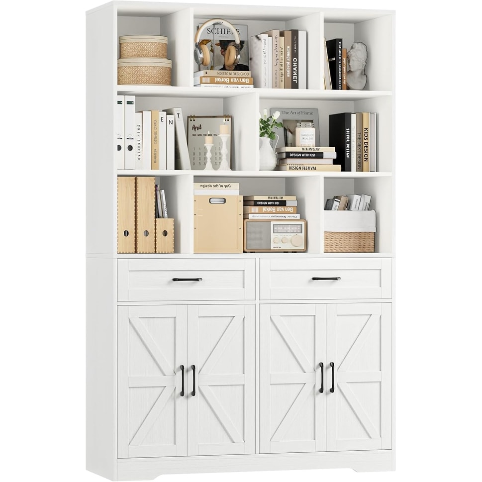 71 Inch Tall 6-Tier Bookcase with Drawers and Doors, White