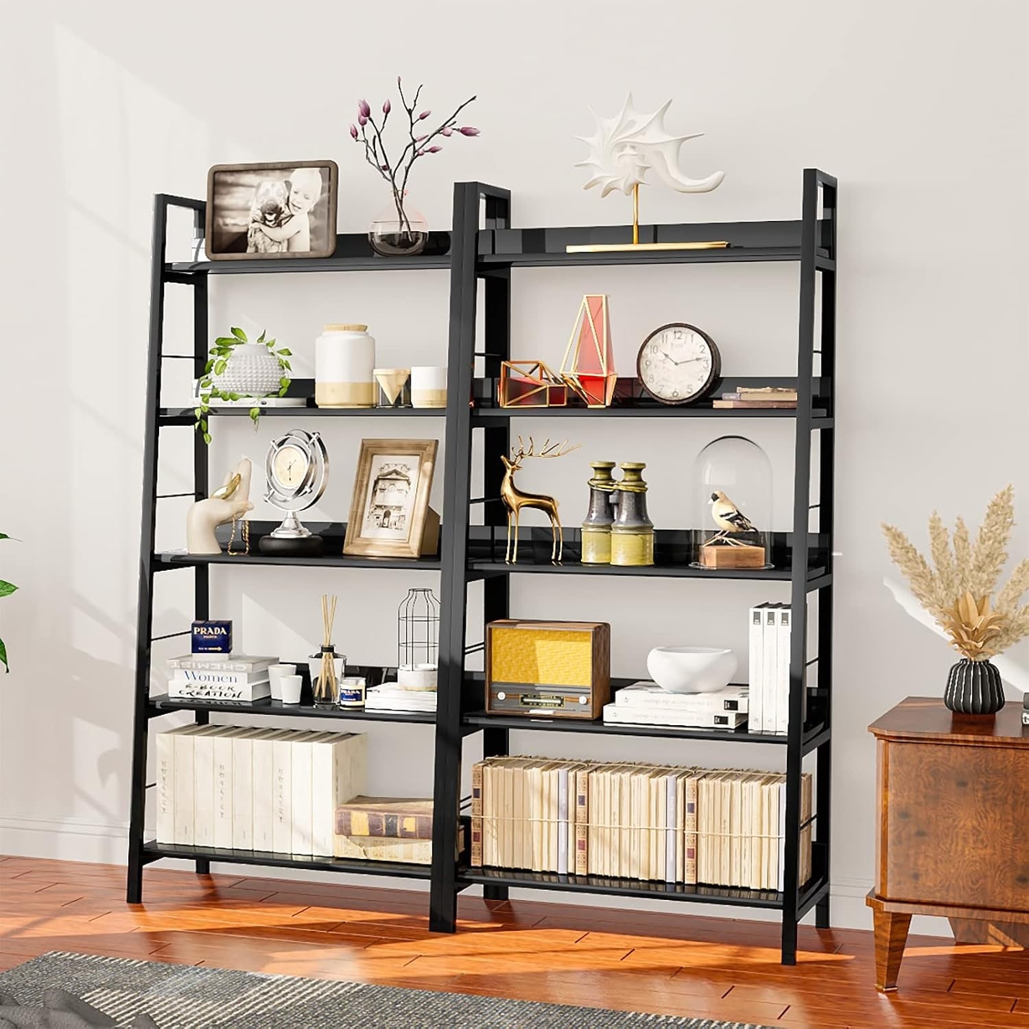 Industrial 5-Shelf Ladder Bookcase, Wood and Metal Storage Shelf for Living Room, Bedroom, Home Office