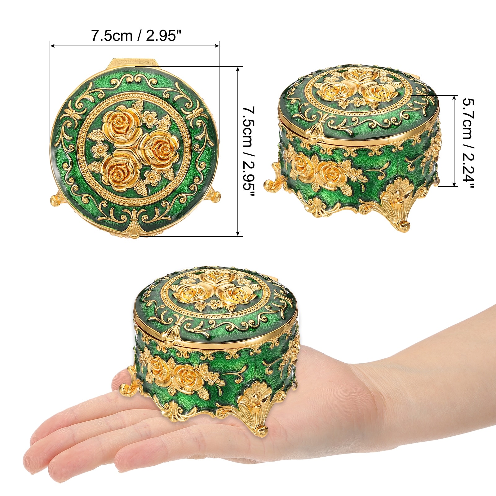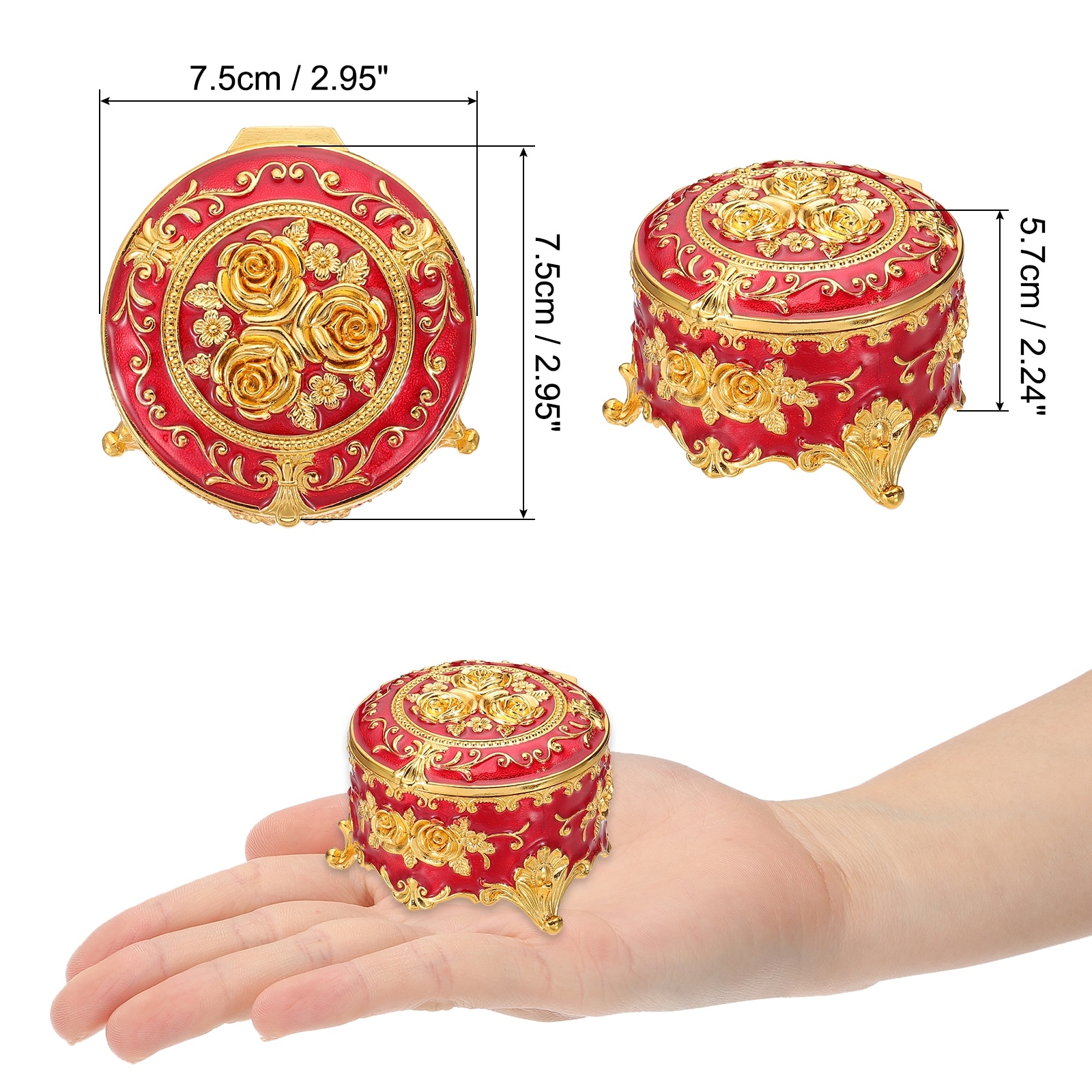 Vintage Metal Jewelry Box, Round Trinket Organizer Box Jewelry Storage Box for Ring Earrings Necklace