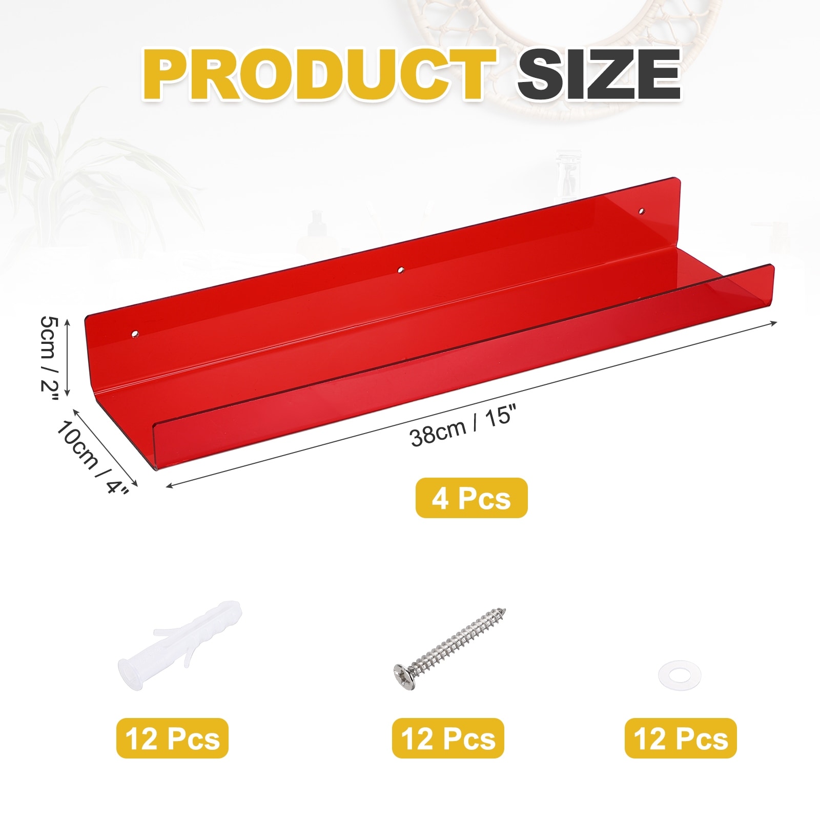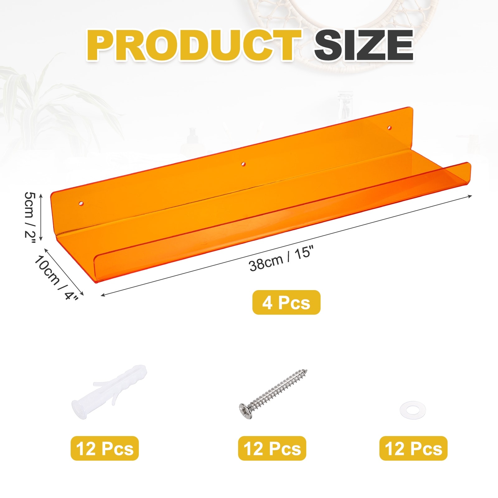 Acrylic Shelves for Wall, Floating Shelves Wall Mount Display Shelf Organizer for Bathroom, Bedroom, Living Room - 15 Inch
