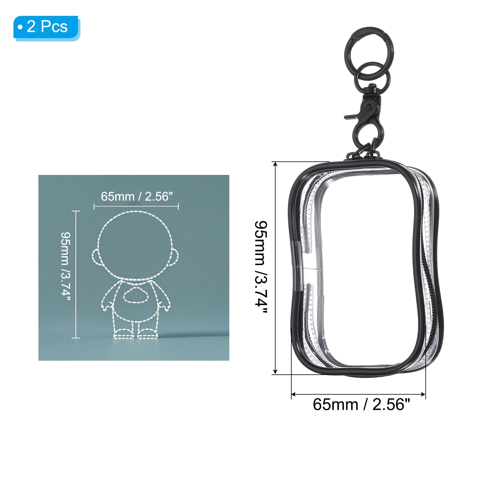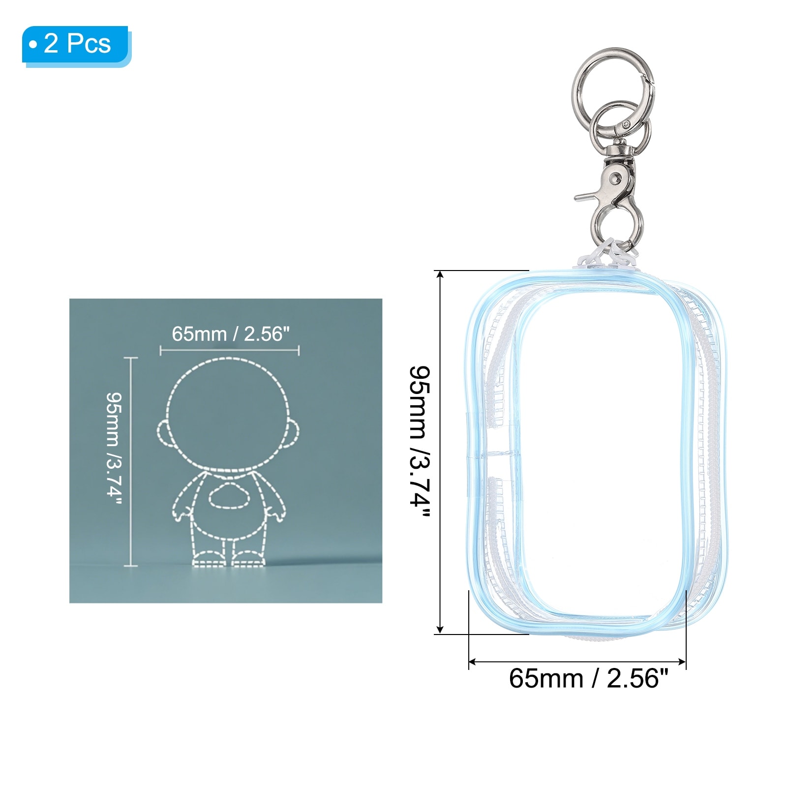 Clear Figure Display Bag with Chain, Clear Dolls Display Bag Portable Small Mini Dolls Pouch Carrying Case - 3.74"