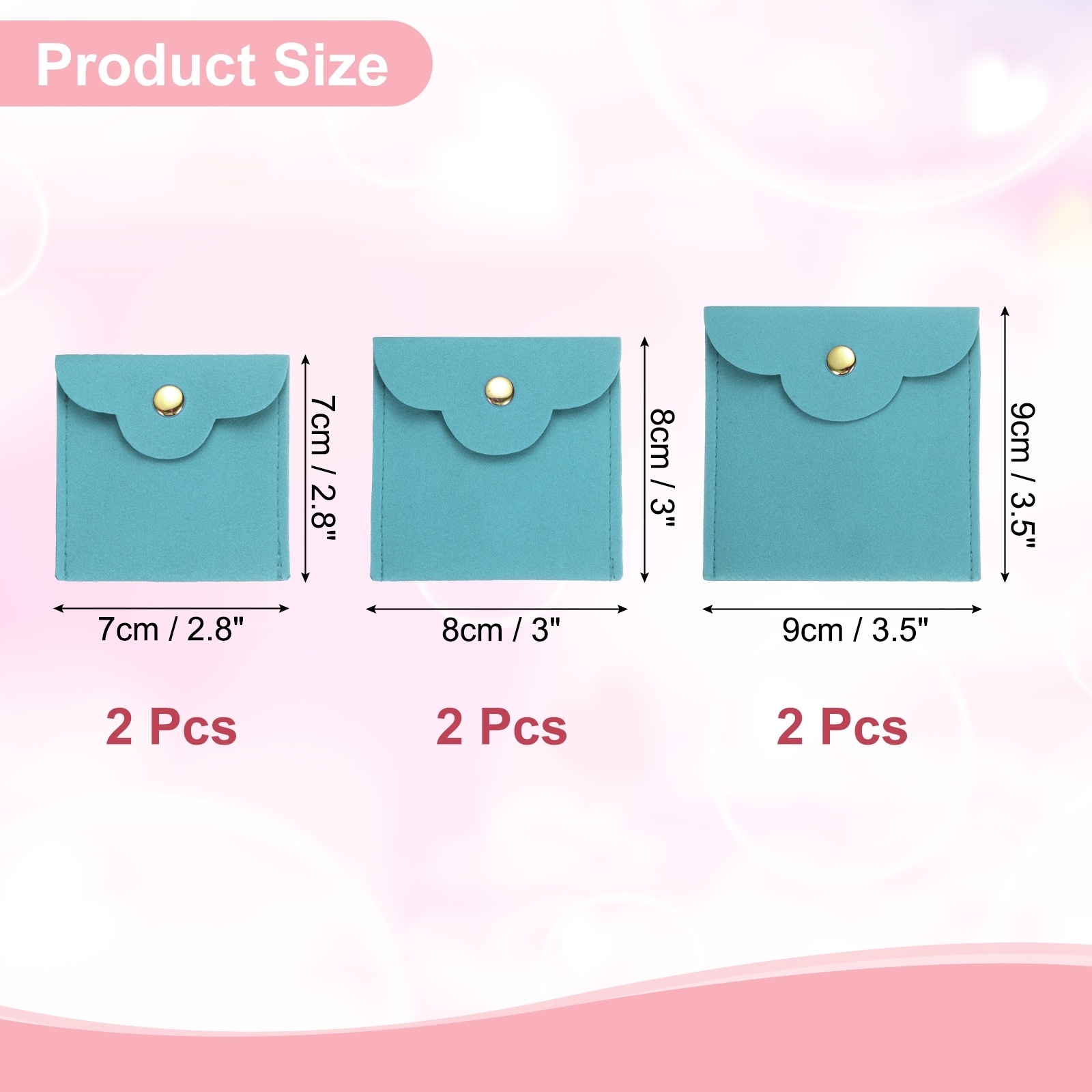 Velvet Jewelry Pouch, Small Microfiber Jewelry Bag - 3.5*3.5+3.1*3.1+2.8*2.8inch