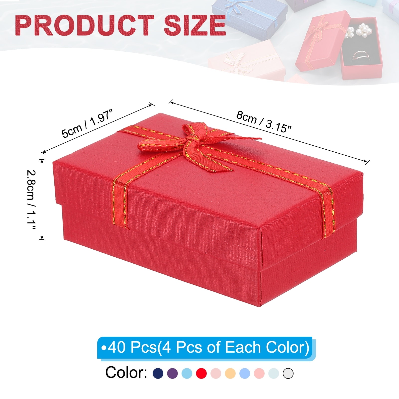 Jewelry Gift Boxes, Small Gift Packaging Box Cardboard Bulk with Lid Ribbon for Earring Ring Christmas Valentine's Day