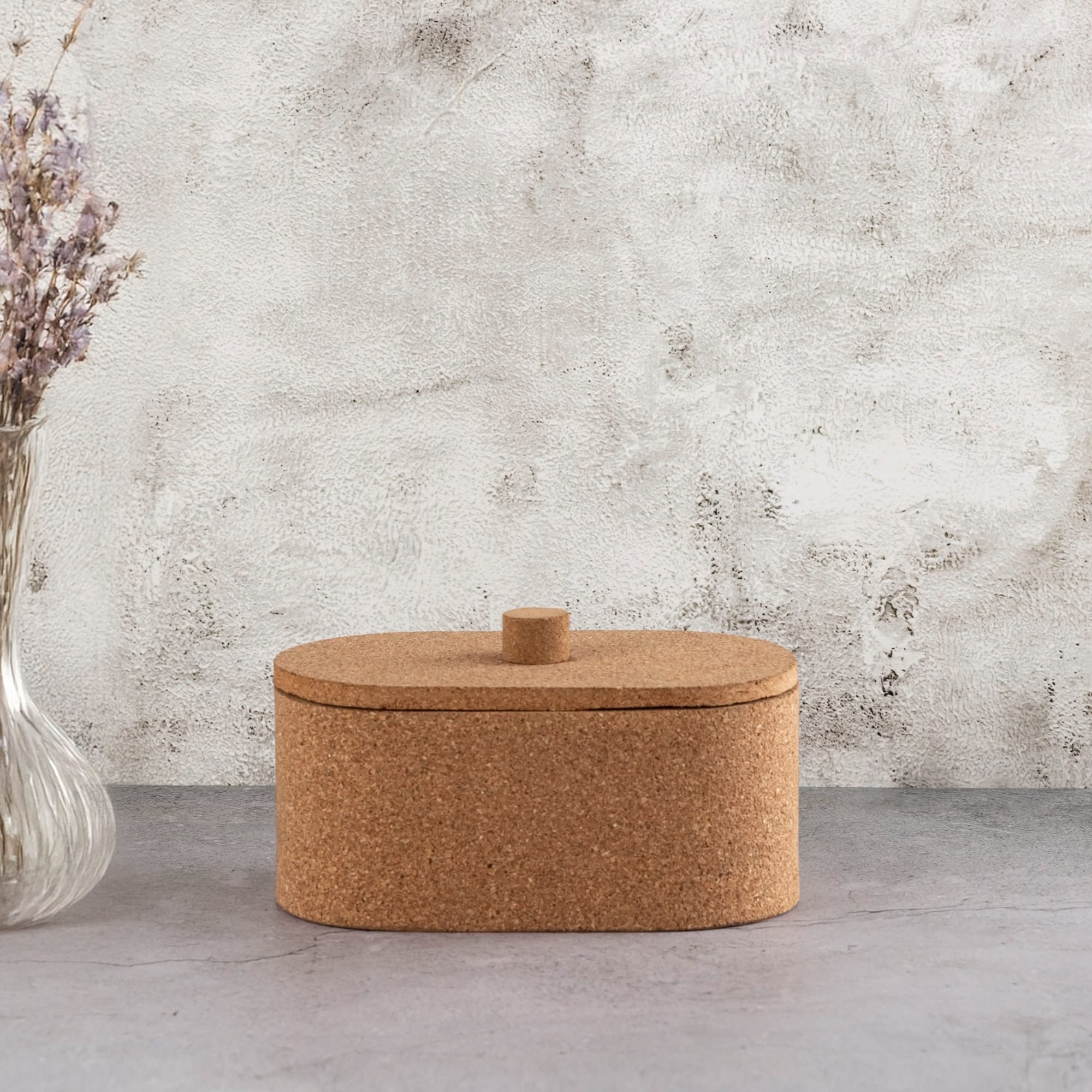 Oval Small Cork Storage Box with Lid - 7.75" - Beige