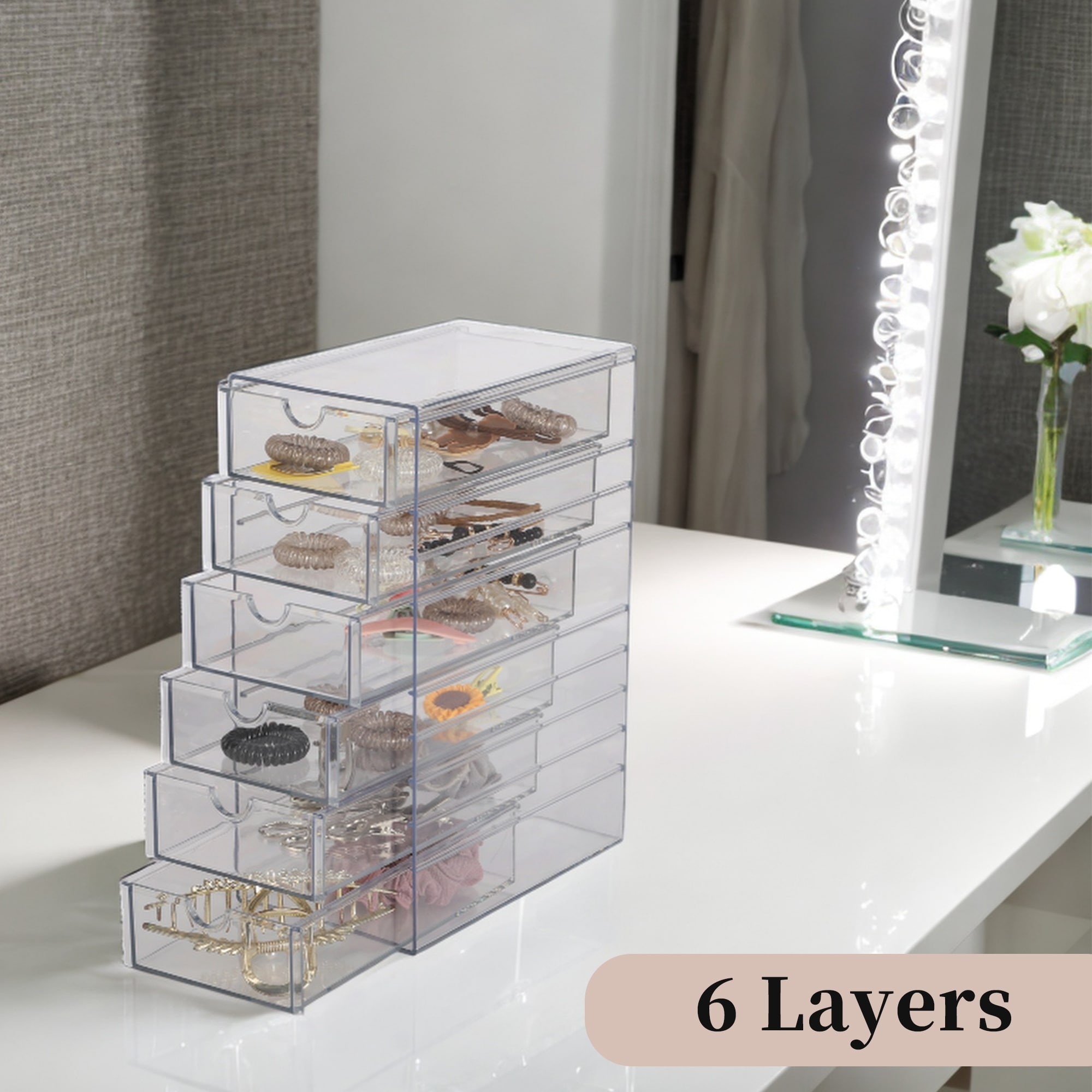 Hair Accessories Organizer Multi-layer Storage Drawers with 6 Drawers Clear - 1pcs