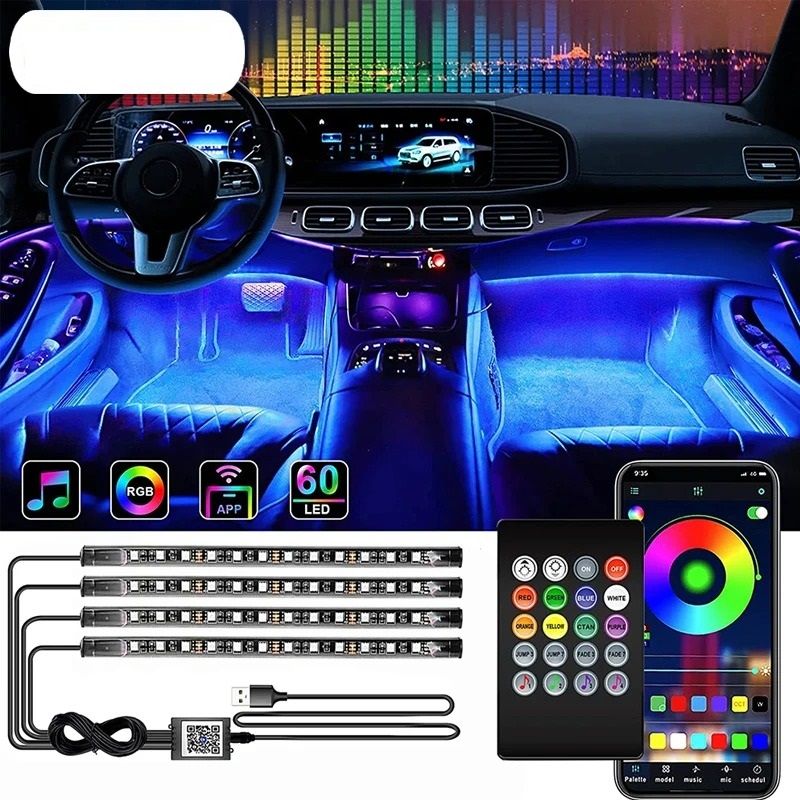 RGB Neon LED Car Interior Ambient Light Kit With App And Remote Control 36led Usb App