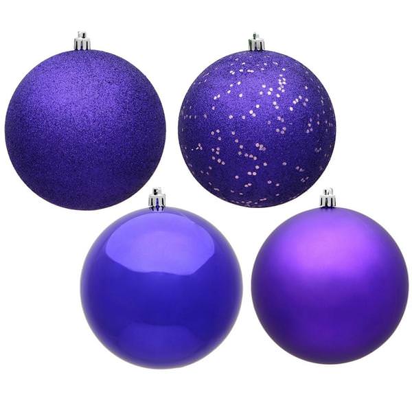 Vickerman 488447 - 12" Purple 4 Assorted Finish Ball Christmas Tree Ornament (Set of 4) (N593066DA)