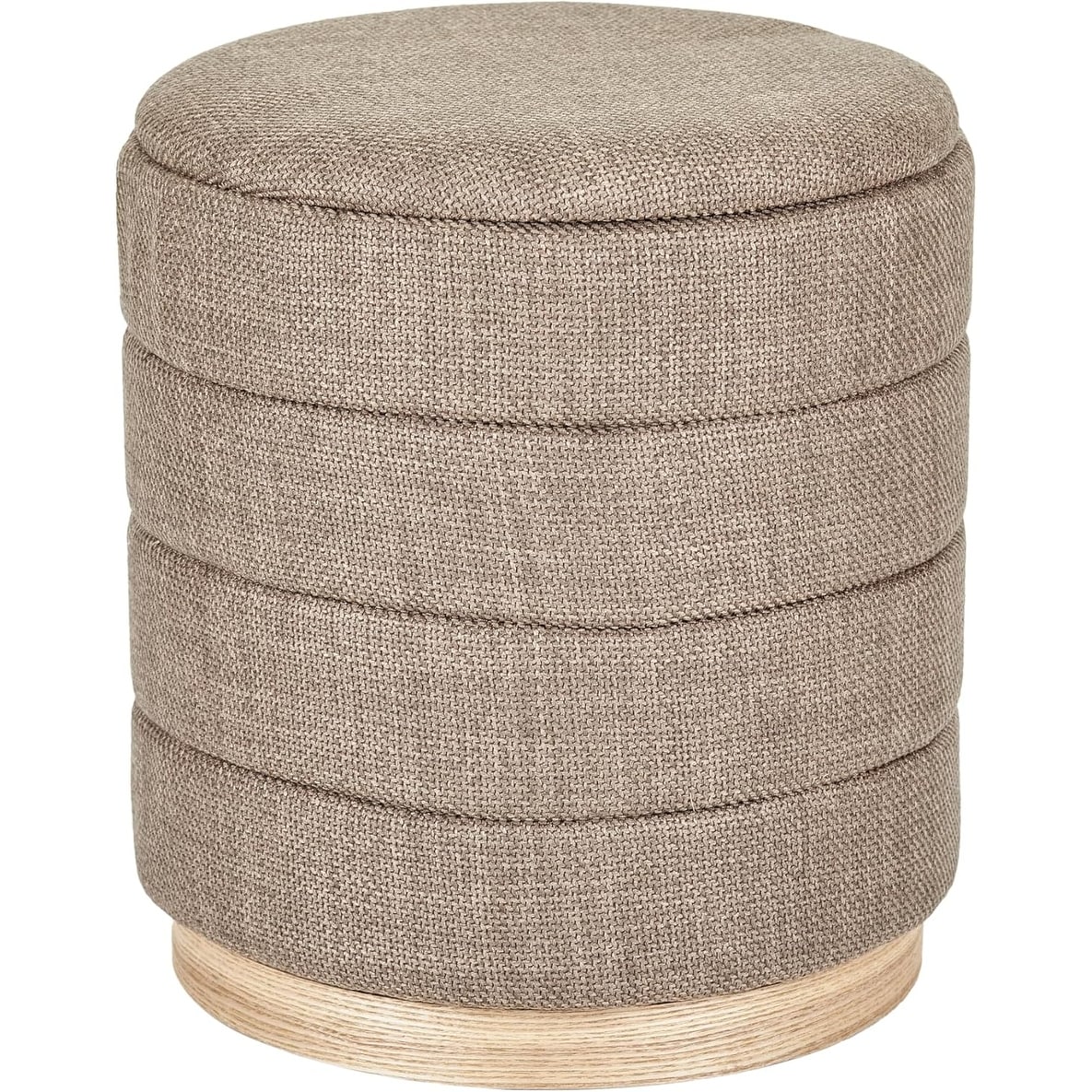 Modern Cylinder Ottoman with Hidden Storage Linen Upholstery Seat
