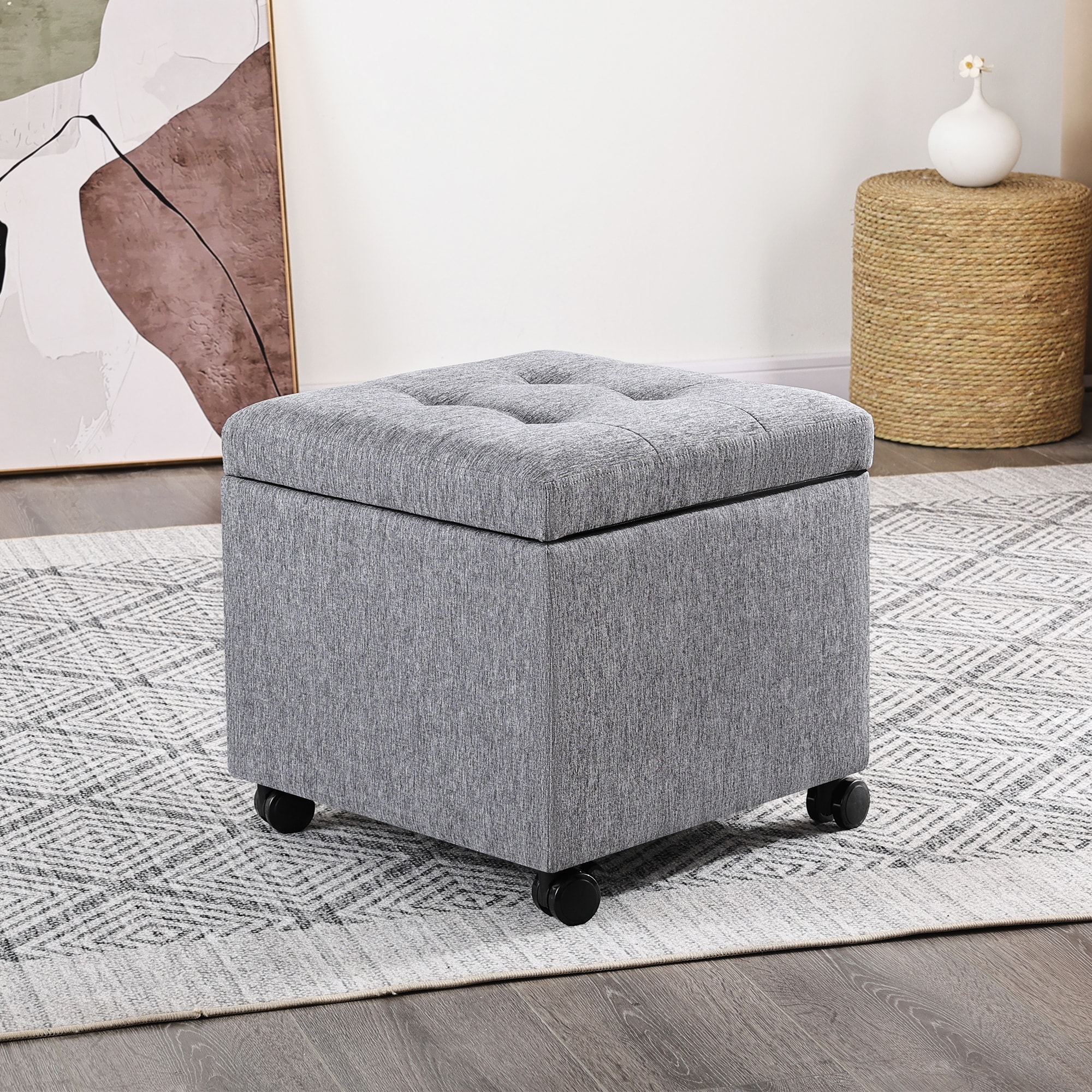 Roomfitters Upholstered Storage Bench Ottoman with Hidden Compartment, Tufted Entryway Bedroom Bench