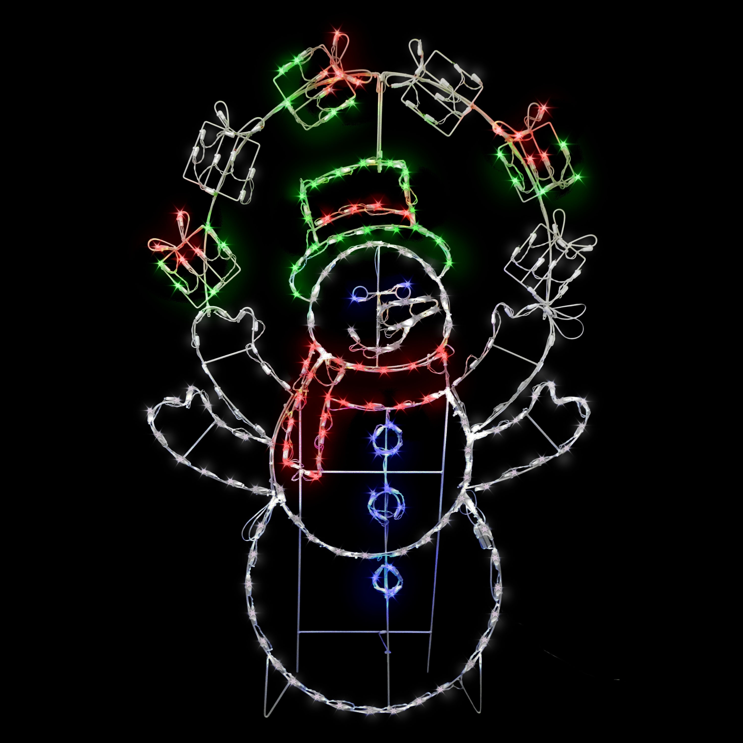 Puleo International 5' 2D Outdoor Snowman with 222 Multi-Color-Color LED Lights - White