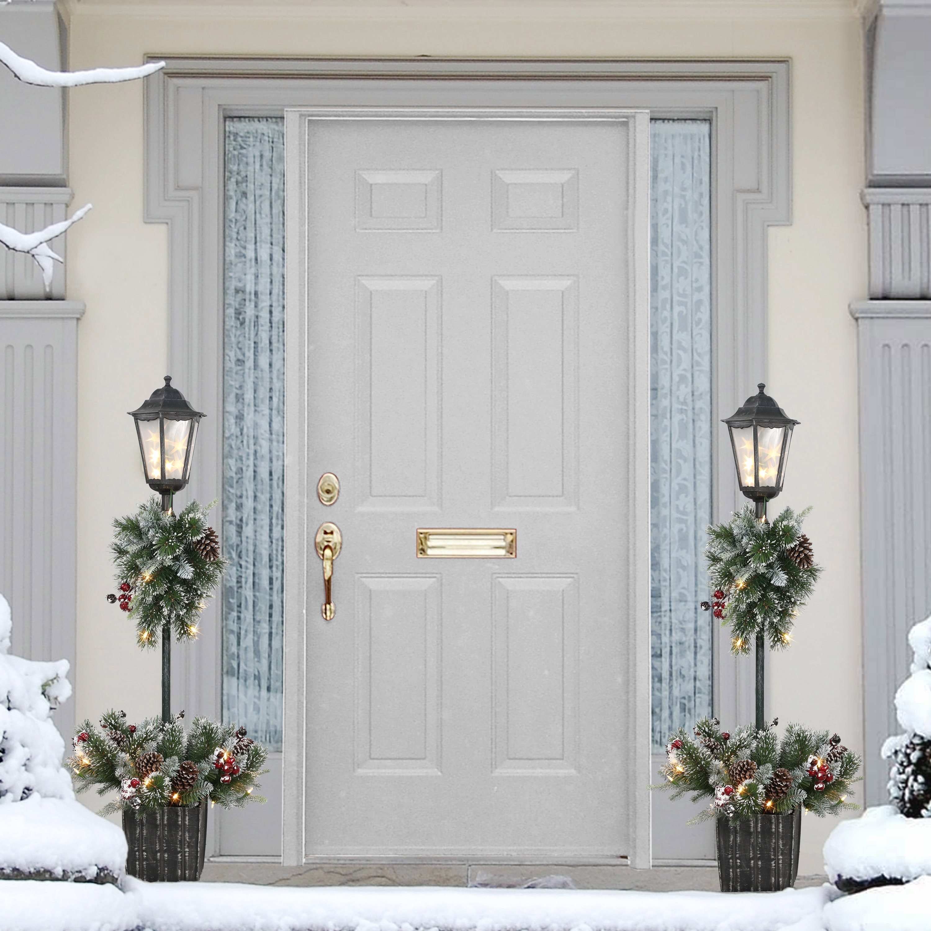 Puleo International 4 ft. Pre-Lit Artificial Pine Lamp Post - Green
