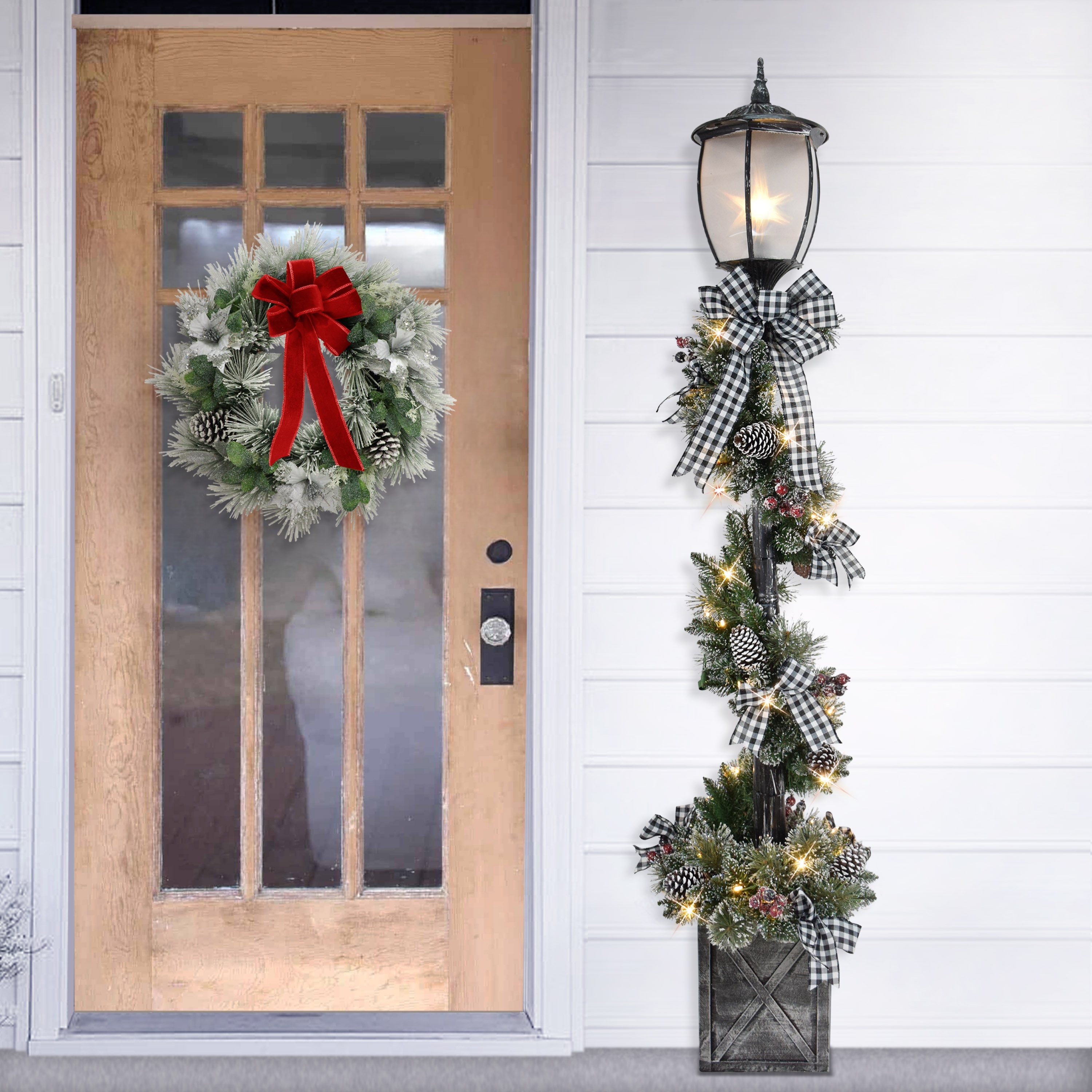 Puleo International 7' Pre-Lit Artificial Adorned Lamp Post with 200 Branch Tips and LED Lights