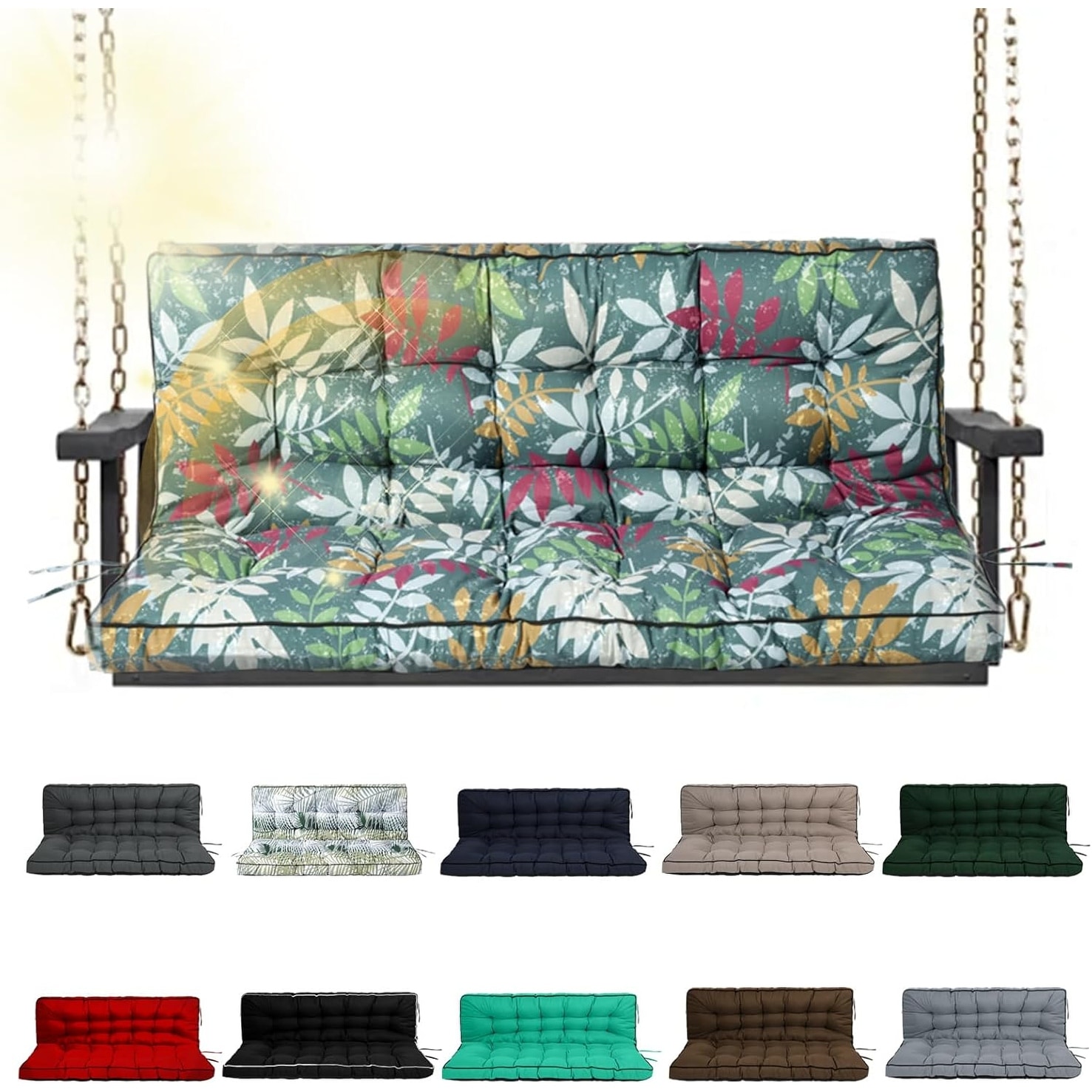 Waterproof 3-Seat Porch Swing Cushion with Backrest and Ties, 4 inch Thickened Outdoor Patio Furniture Cushion