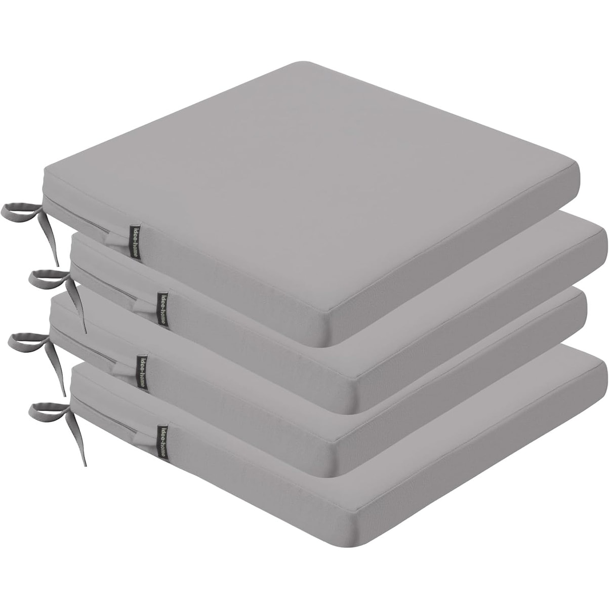Set of 4 Waterproof Outdoor Chair Cushions with Ties, 17x16 Inch, UV Treated, Removable Cover, Double-Layered Memory Foam
