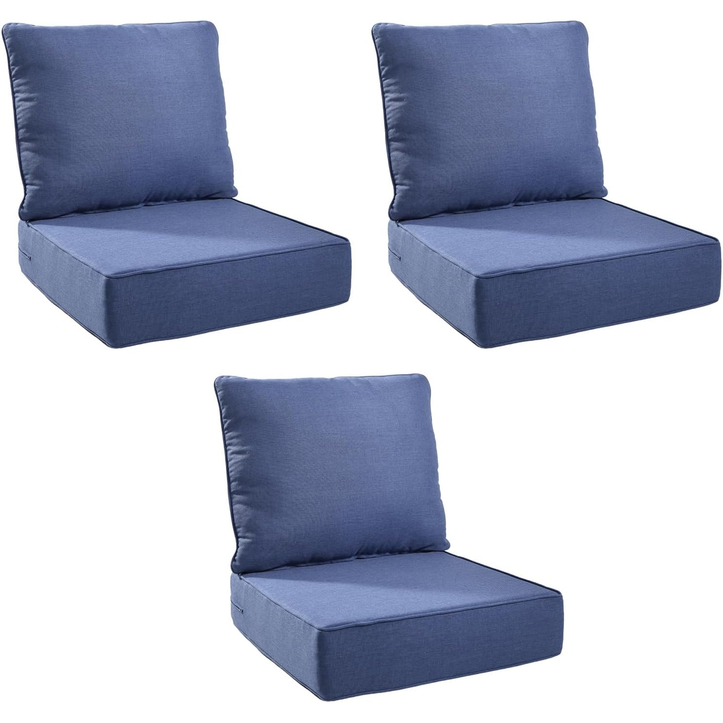 6-Inch Thick Outdoor Cushion Set - UV & Water Resistant Patio Furniture Covers, 22x24 Inch, Blue (3-Pack)